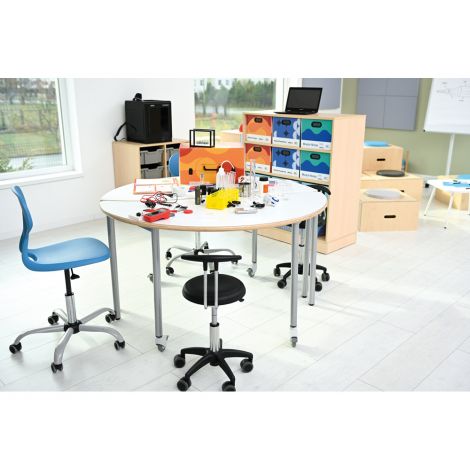 Scaunele Colores rotative sunt aditia perfecta pentru orice camera moderna datorita designului si culorilor aprinse. Sunt destinate salilor de informatica sau in camere cu birouri. Astfel, copiii isi pot ajusta pozitia cand stau pe scaun usor in timpul utilizarii unui computer acasa sau in timpul orelor de curs. Sezutul si spatarul sunt fabricate din aceeasi bucata, oferind scaunului un design ergonomic, iar spatarul usor flexibil se adapteaza usor pozitiei spatelui copilului. Suprafata aderenta asigura ca nu se poate aluneca de pe sezut cu usurinta. Scaunul colores vine disponibil in sase culori (burgund, rosu, galben, verde, tucoaz, gri). Cadrul scaunului este echipat cu un mecanism ce permite ajustarea inaltimii sezutului, pentru ca scaunul sa poata fi folosit pe toata durata cresterii copilului, acomodand diferite inaltimi. Scaunele rotative de plastic sunt rezistente la murdarie si umiditate precum si la zgarieturi, oferind durabilitate la utilizarea intensa pe termen lung precum. La varianta fixa, picioarele scaunului au acoperitori de plastic pentru a proteja podeaua de zgarieturi. Nu se recomanda curatarea scaunelor cu produse de curatenie ce contin alcool. Produsul se conformeaza la normativele scolare: PN-EN 1729-1: 2016 si PN-EN 1729-2+A1: 2016. Caracteristici produs: Inaltimea spatarului este ajustabila de la marimea 4 pana la 7 (38 pana la 51 cm).   Marime Inaltime Sezut H Inaltime pana la S Inaltime copil Institutie 0 21 cm 14 cm de la 80 la 95 cm Cresa 1 26 cm 15 cm de la 93 la 116 cm Cresa/Gradinita 2 31 cm 16 cm de la 108 la 121 cm Gradinita 3 35 cm 18 cm de la 119 la 142 cm Gradinita 4 38 cm 19 cm de la 133 la 159 cm Scoala 5 43 cm  20 cm de la 146 la 176.5 cm Scoala 6 46 cm 21 cm de la 159 la 188 cm Scoala 7 51 cm 22 cm de la 174 la 207 cm Scoala   Nu lasati ambalajele jucariilor/produselor la indemana copiilor. Indepartati orice ambalaj al jucariei/produsului inainte de a da jucaria/produsul copilului. Va rugam sa supravegheati copilul in timp ce se joaca/foloseste acest produs. Pastrati instructiunile si etichetele pentru referinte viitoare. Pastrati jucaria/produsul departe de foc; feriti jucaria/produsul de temperaturi ridicate si umiditate.
