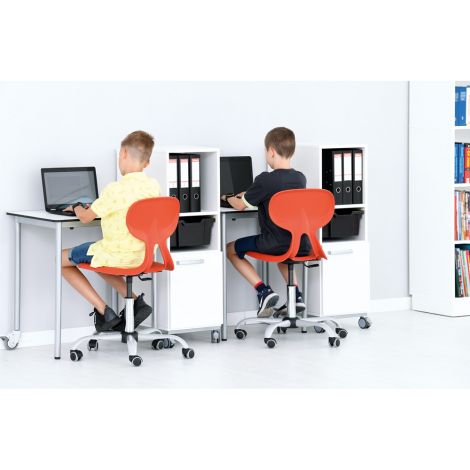 Scaunele Colores rotative sunt aditia perfecta pentru orice camera moderna datorita designului si culorilor aprinse. Sunt destinate salilor de informatica sau in camere cu birouri. Astfel, copiii isi pot ajusta pozitia cand stau pe scaun usor in timpul utilizarii unui computer acasa sau in timpul orelor de curs. Sezutul si spatarul sunt fabricate din aceeasi bucata, oferind scaunului un design ergonomic, iar spatarul usor flexibil se adapteaza usor pozitiei spatelui copilului. Suprafata aderenta asigura ca nu se poate aluneca de pe sezut cu usurinta. Scaunul colores vine disponibil in sase culori (burgund, rosu, galben, verde, tucoaz, gri). Cadrul scaunului este echipat cu un mecanism ce permite ajustarea inaltimii sezutului, pentru ca scaunul sa poata fi folosit pe toata durata cresterii copilului, acomodand diferite inaltimi. Scaunele rotative de plastic sunt rezistente la murdarie si umiditate precum si la zgarieturi, oferind durabilitate la utilizarea intensa pe termen lung precum. La varianta fixa, picioarele scaunului au acoperitori de plastic pentru a proteja podeaua de zgarieturi. Nu se recomanda curatarea scaunelor cu produse de curatenie ce contin alcool. Produsul se conformeaza la normativele scolare: PN-EN 1729-1: 2016 si PN-EN 1729-2+A1: 2016. Caracteristici produs: Inaltimea spatarului este ajustabila de la marimea 4 pana la 7 (38 pana la 51 cm). Marime Inaltime Sezut H Inaltime pana la S Inaltime copil Institutie 0 21 cm 14 cm de la 80 la 95 cm Cresa 1 26 cm 15 cm de la 93 la 116 cm Cresa/Gradinita 2 31 cm 16 cm de la 108 la 121 cm Gradinita 3 35 cm 18 cm de la 119 la 142 cm Gradinita 4 38 cm 19 cm de la 133 la 159 cm Scoala 5 43 cm 20 cm de la 146 la 176.5 cm Scoala 6 46 cm 21 cm de la 159 la 188 cm Scoala 7 51 cm 22 cm de la 174 la 207 cm Scoala Nu lasati ambalajele jucariilor/produselor la indemana copiilor. Indepartati orice ambalaj al jucariei/produsului inainte de a da jucaria/produsul copilului. Va rugam sa supravegheati copilul in timp ce se joaca/foloseste acest produs. Pastrati instructiunile si etichetele pentru referinte viitoare. Pastrati jucaria/produsul departe de foc; feriti jucaria/produsul de temperaturi ridicate si umiditate.