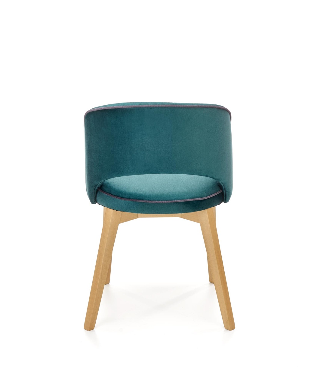 Scaun tapitat Marino Scaunul tapitat Marino este un scaun deosebit de elegant, este simplu si elegant, fiind in trend cu cerintele contemporane in materie de mobilier. Materialul folosit este de inalta calitate care asigura o utilizare indelungata si rezistenta sporita. Datorita picioarelor din lemn este un scaun durabil si foarte stabil, fiind potrivit pentru interioarele moderne si clasice. Dimensiuni: Latime: 51 cm Adancime: 57 cm Inaltimea totala: 78 cm Inaltimea sezutului fata de sol: 47 cm Detalii tehnice: Cadrul este realizat din lemn masiv de fag Tapiteria este confectionata din catifea Culoare: Verde / Stejar Honey Asamblare: Produsul nu este montat. Asamblarea este rapida si usoara.