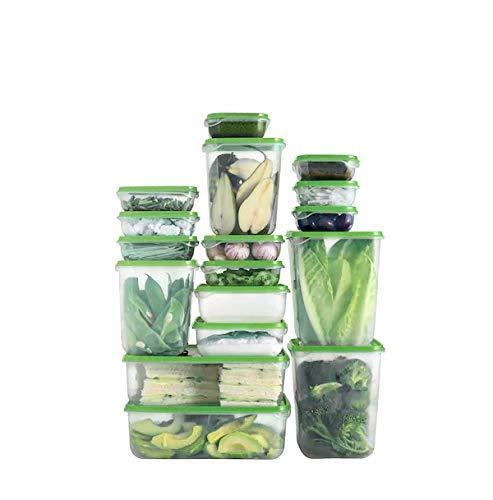 Set 17 caserole alimente cu capac, plastic, transparente Set de caserole utile pentru orice tip de alimente, de la mezeluri si branzeturi, la resturi de mancare sau portii individuale. Caserolele pentru depozitarea mancarii se pot stivui pentru a economisi spatiu. Pastreaza mancarea intr-un recipient pentru a o putea reincalzi si consuma alta data. Borcanul transparent te ajuta sa gasesti mai usor ceea ce cauti. Caserolele pentru depozitarea mancarii se pot stivui pentru a economisi spatiu in frigider sau in congelator. Include: 4 caserole (9x9x4cm, 150ml), 3 caserole (12x8x4cm, 150ml), 2 caserole (12x12x4cm, 300ml), 2 caserole (12x12x14cm, 1l), 2 caserole (14x14x6cm, 600ml), 2 caserole (14x14x16cm, 1,6l) 2 caserole (23x16x8cm, 1,8l). Intructiuni de ingrijire Se poate utiliza in cuptorul cu microunde; incalzeste mancarea pana la 100°C. Se poate folosi in congelator. Poate fi spalat in masina de spalat vase. Lasati capacul intredeschis in timpul incalzirii pentru a elibera aburul.