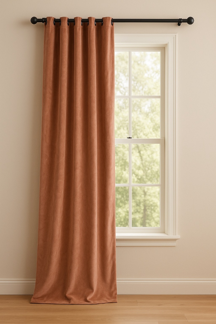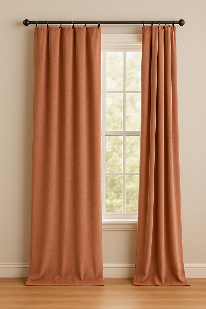 Set 2 Draperii Blackout 80%, din Catifea, Somon inchis, 140cm latime x 260cm inaltime, cu tiv lat pt bara