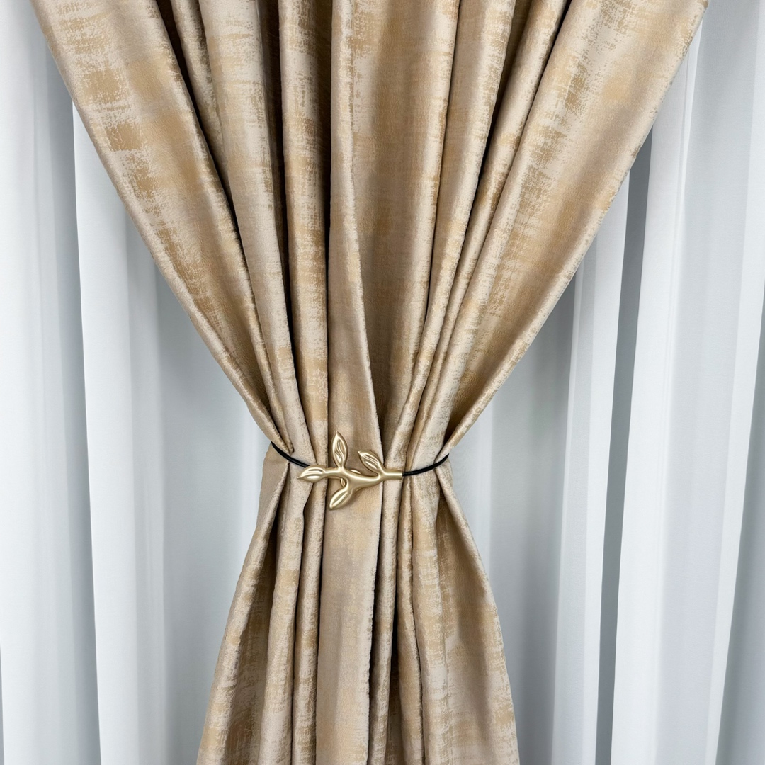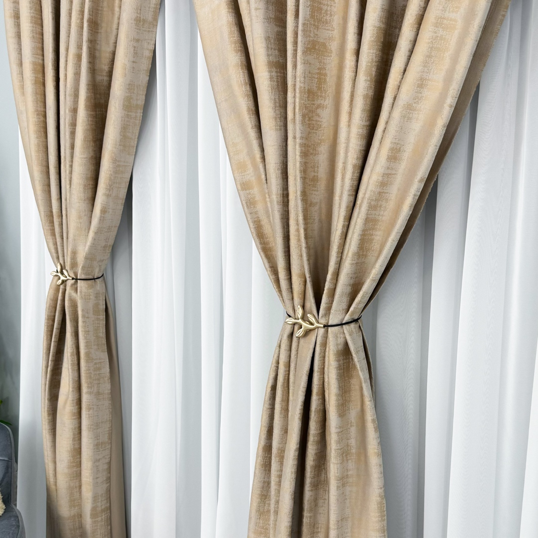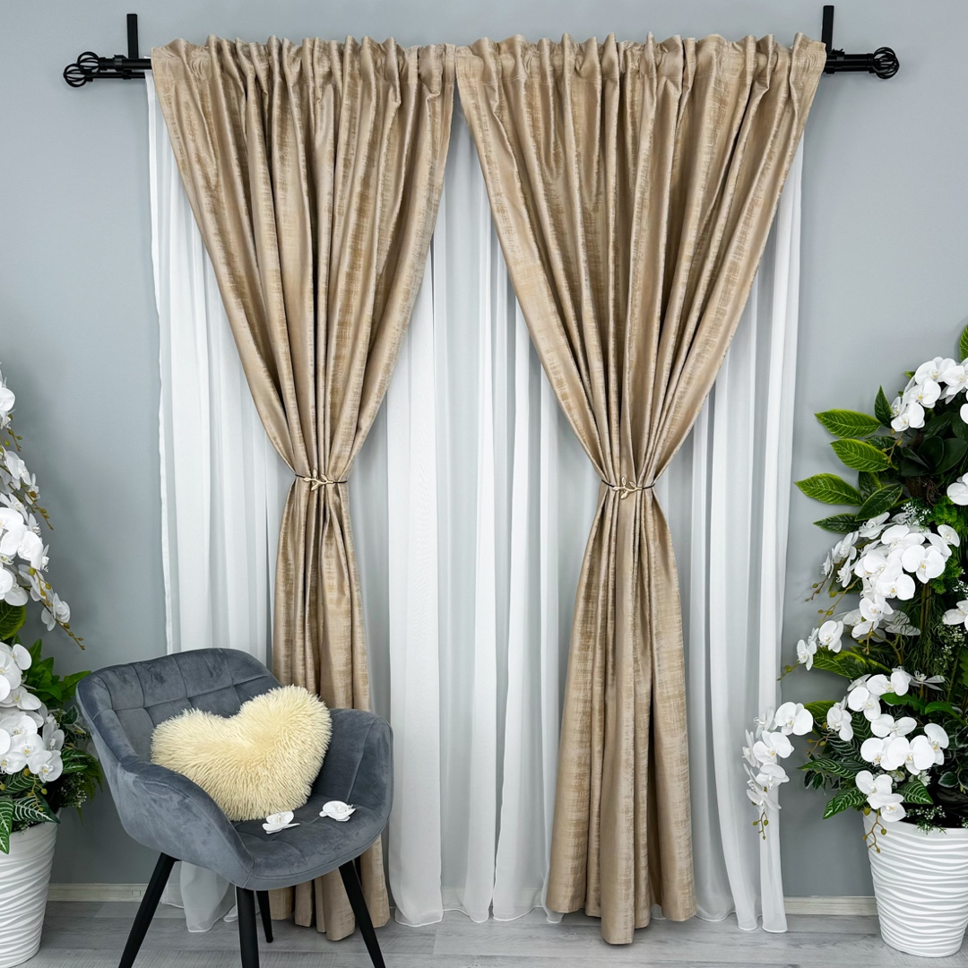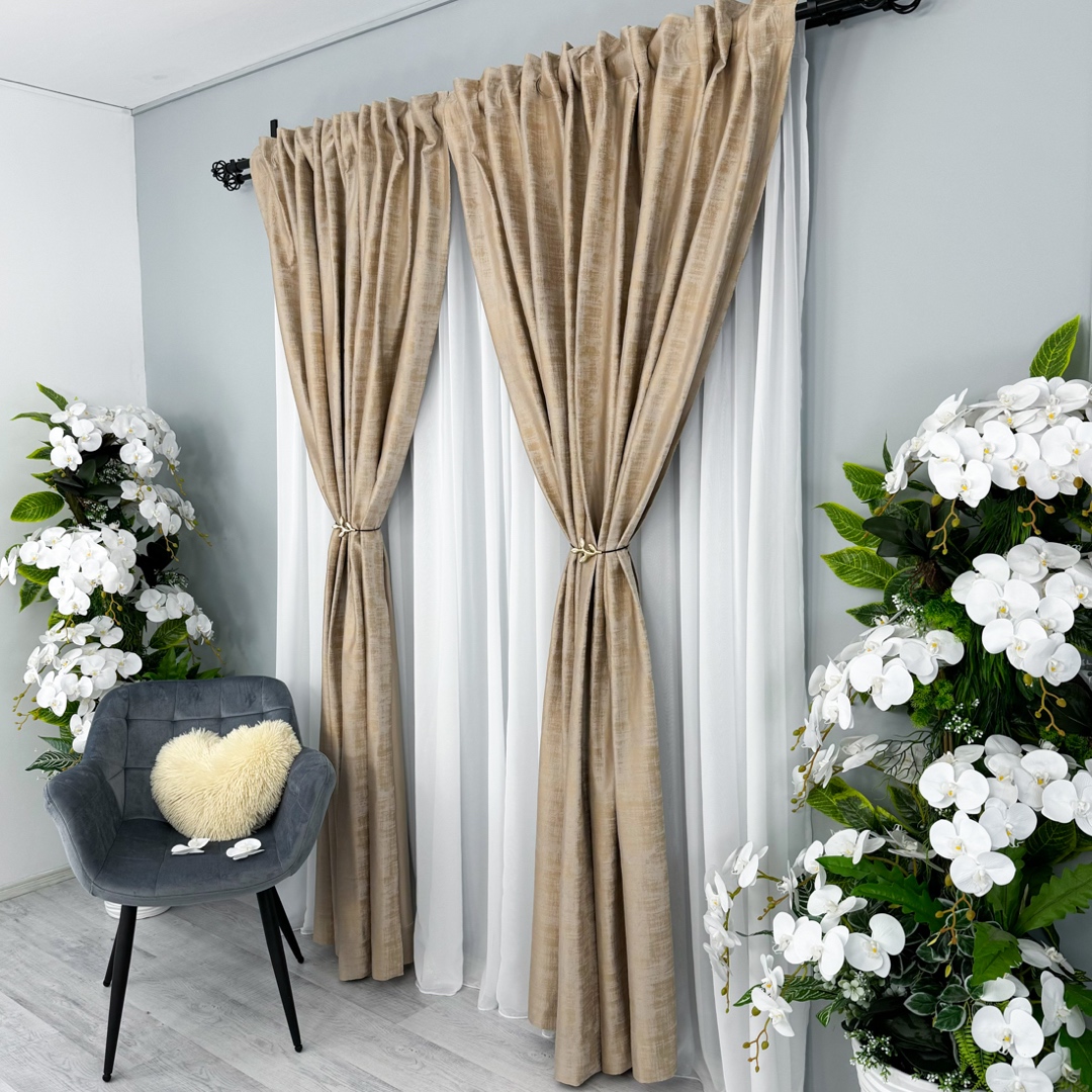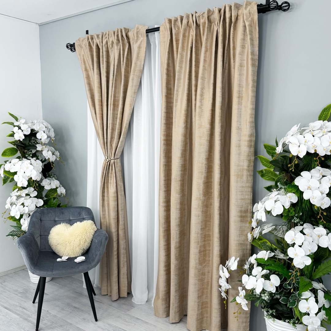 Set 2 Draperii Catifea cu model Venti, Bej, 140cm latime x 260cm inaltime, cu tiv lat pt bara