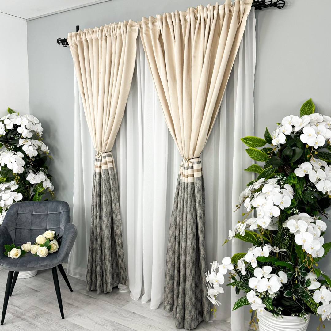 Draperiile tip panou reprezinta o alegere sofisticata si luxoasa pentru orice incapere. Aceste draperii sunt confectionate dintr-un material de inalta calitate, care ofera o textura moale si bogata, aducand un sentiment de rafinament si eleganta in orice spatiu. Materialul este dens, dispus in panouri a cate 3 metri latime. Datorita intervalului de repetare a modelului, materialul poate fi taiat doar in multiplii de 3metri. Ceea ce face draperiile cu adevarat remarcabile sunt detaliil