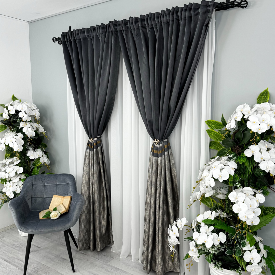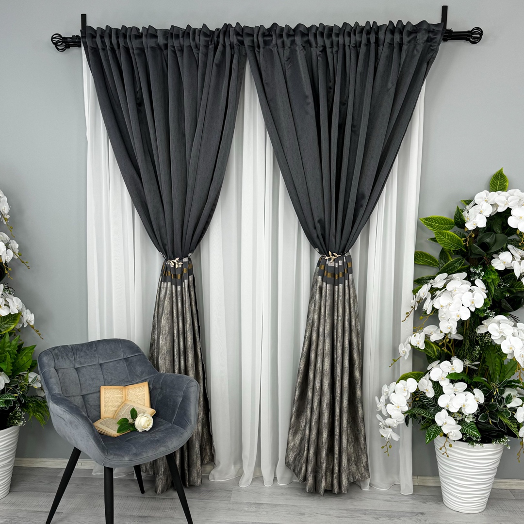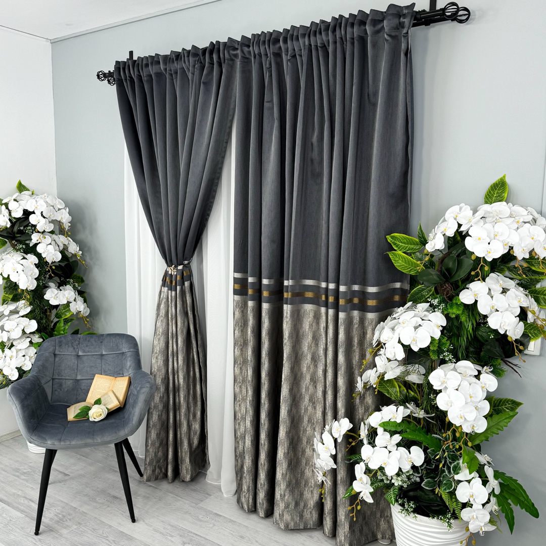 Draperiile Lines reprezinta o alegere sofisticata si luxoasa pentru orice incapere. Aceste draperii sunt confectionate dintr-un material de inalta calitate, care ofera o textura moale si bogata, aducand un sentiment de rafinament si eleganta in orice spatiu.  Ceea ce face draperiile cu adevarat remarcabile sunt detaliile aurii. Aceste insertii metalizate adauga un element de stralucire si glamour, creand un contrast elegant cu textura mata a materialului. Fie ca sunt plasate intr-un li