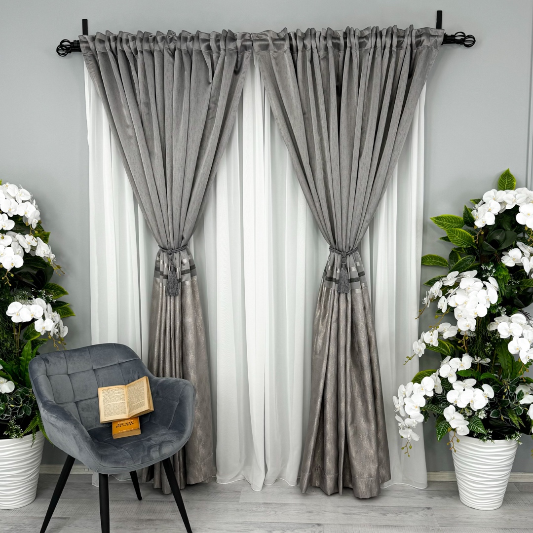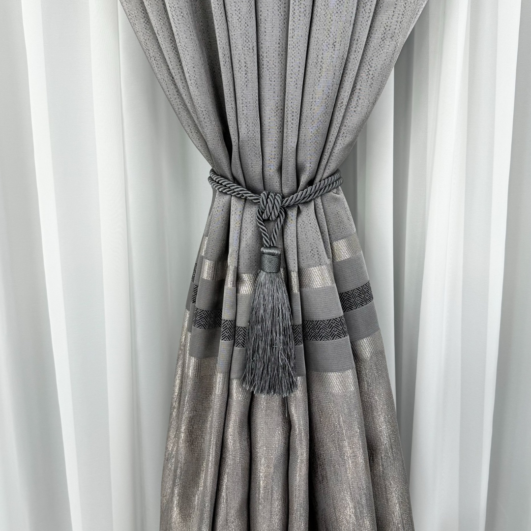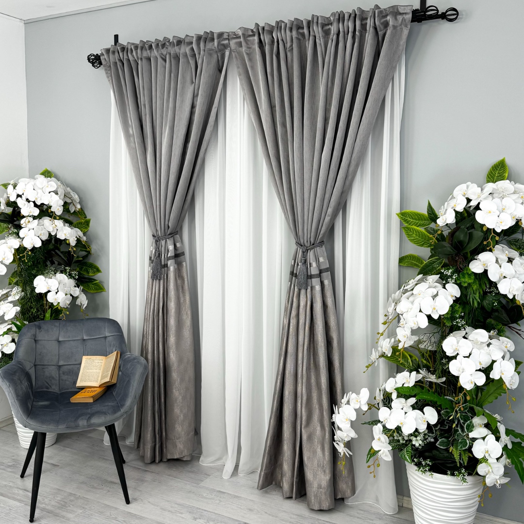 Draperiile Lines reprezinta o alegere sofisticata si luxoasa pentru orice incapere. Aceste draperii sunt confectionate dintr-un material de inalta calitate, care ofera o textura moale si bogata, aducand un sentiment de rafinament si eleganta in orice spatiu.  Ceea ce face draperiile cu adevarat remarcabile sunt detaliile aurii. Aceste insertii metalizate adauga un element de stralucire si glamour, creand un contrast elegant cu textura mata a materialului. Fie ca sunt plasate intr-un li