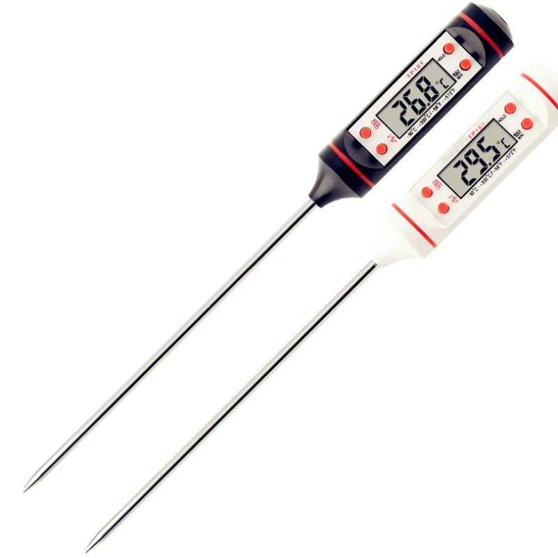Set 2 termometre digitale pentru mancare alimentare: o baterie AG13 1.5V; interval de masurare: -50 grade ~ +300 grade; masoara atat in grade Celsius cat si Fahrenheit; oprire automata dupa 10 minute pentru economisirea de energie. Oferta include: 2 x termometru digital pentru mancare