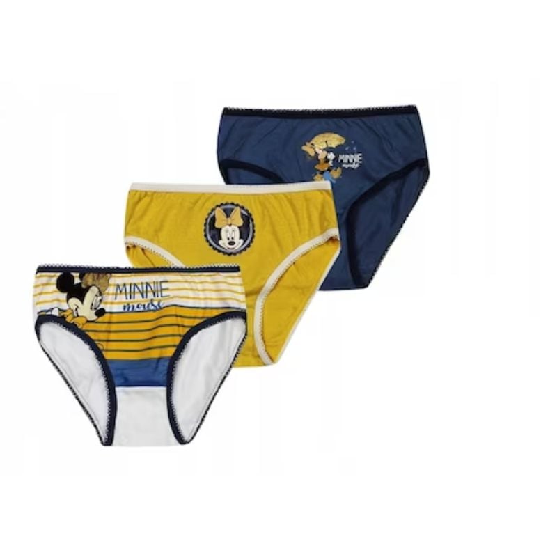 Set 3 chiloti pentru fetite, 100% bumbac organic, multicolor, Minnie Mouse, Disney Set 3 chilotei pentru fetite. Material confortabil si moale la atingere. Prevazuti cu imprimeu Minnie Mouse Confectionati din bumbac organic 100%. Spalare la maxim 40 grade C. Produs cu licenta oficiala Certificat OEKO-TEX CARACTERISTICI Tip produs: Chiloti Numar piese: 3 Imprimeu: Desene animate Culoare: Multicolor Material: Bumbac Poveste Personaj: Minnie Mouse Detalii: 100 % Bumbac organic Linie Brand: Minnie Mouse