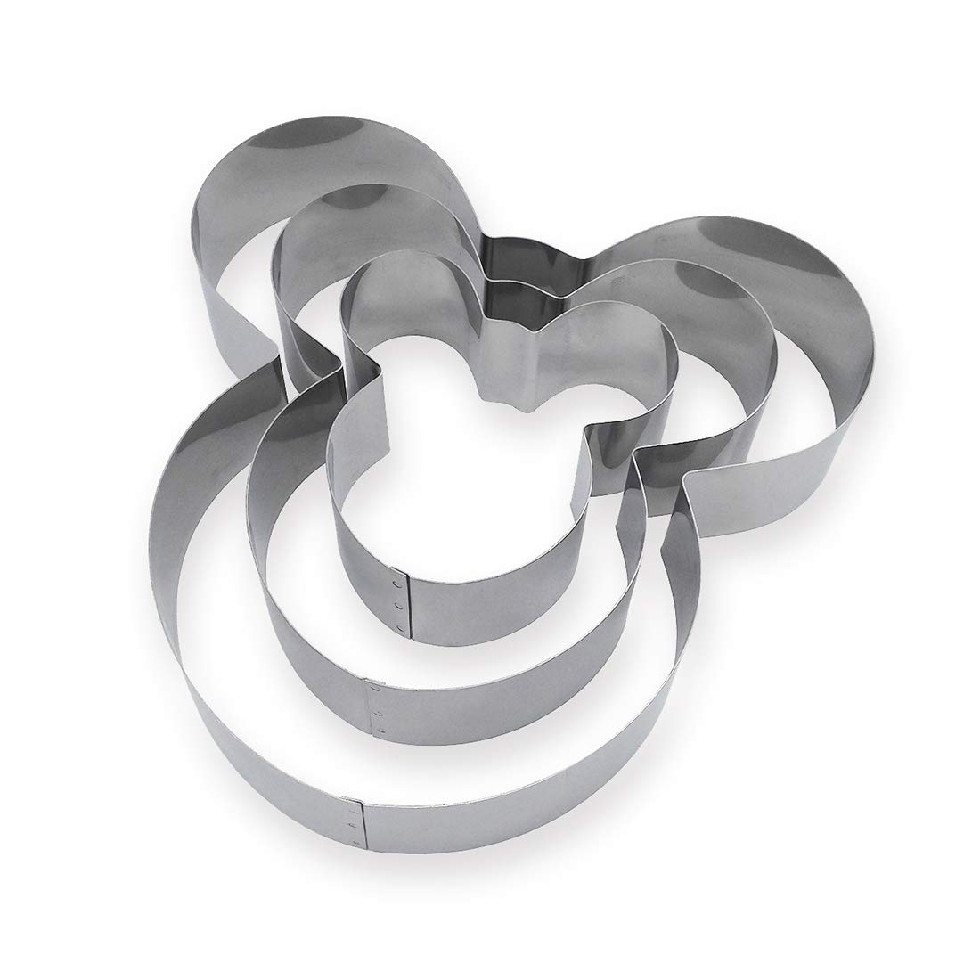 Set 3 forme tort Inel pentru tort, Mickey Mouse Dimensiuni: 20 x 4.5 cm 15 x 4.5 cm 10 x 4.5 cm Material: otel inoxidabil Culoare: argintiu