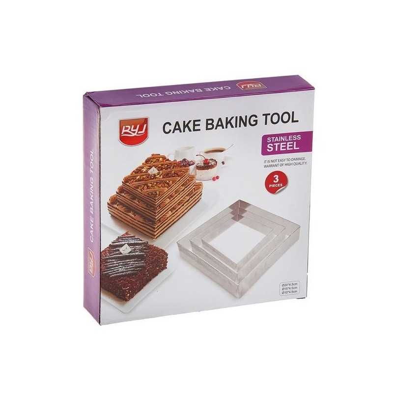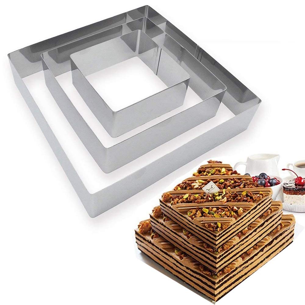 Set 3 forme tort Inel pentru tort, Square Dimensiuni: 20 x 4.5 cm 15 x 4.5 cm 10 x 4.5 cm Material: otel inoxidabil Culoare: argintiu