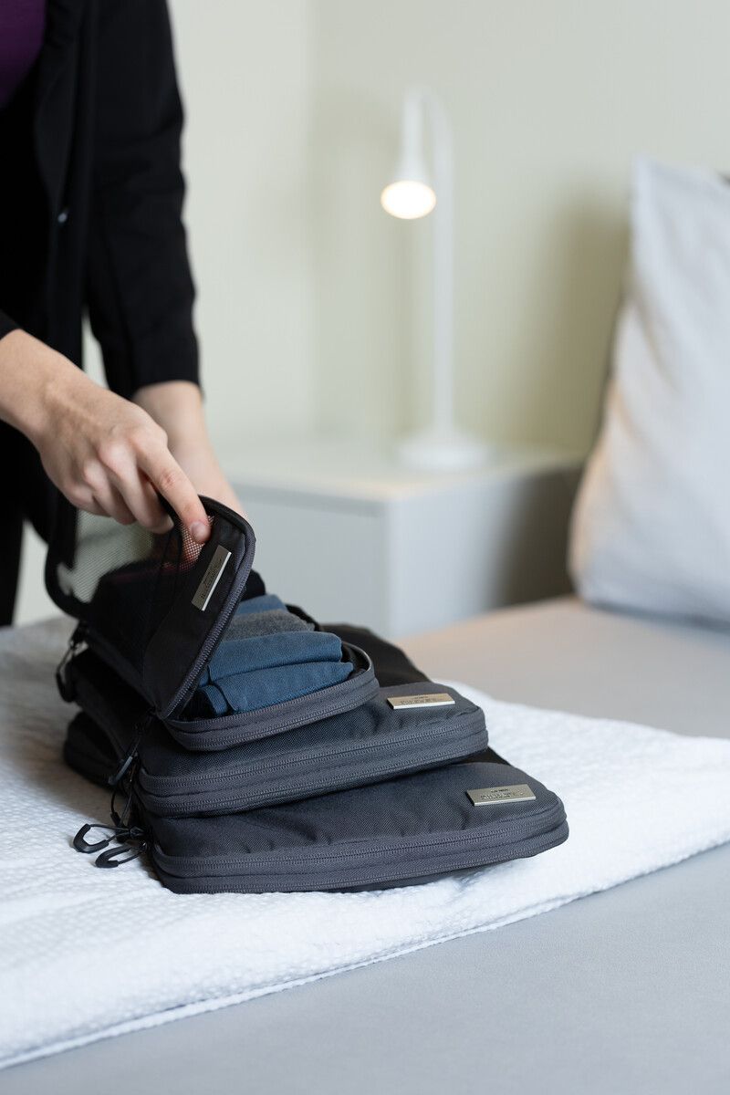 Set 3 organizatoare calatorie - Blue Cycle contine 3 organizatoare de calatorie perfecte pentru a depozita in ele hainele si a reduce riscul ca acestea sa se sifoneze. De asemenea, cele 3 organizatoare au rolul de a te ajuta sa economisesti spatiul din valiza.Set 3 organizatoare calatorie - Blue Cycle au culoarea albastru inchis.Set 3 organizatoare calatorie - Blue Cycle au dimensiuni diferite, incepand de la L, pentru camasi si pantaloni, si continuand cu M, pentru camasi, si S, pentru lenjerie intima si sosete.