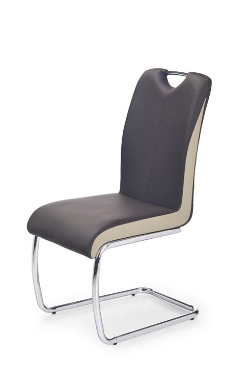 Scaunul K184 este solutia perfecta pentru interioare moderne. Scaunul este tapitat cu piele ecologica eleganta, rezistenta si placuta la atingere. Aspectul scaunului va fi apreciat datorita elegantei si a modului practic avut in vedere la constructia lui cu un design simplu. In partea de sus a spatarului, scaunul are un maner foarte util pentru manipulare. Structura robusta este realizata din otel cromat garantand durabilitatea, rezistenta si stabilitatea scaunului. Scaunul K184 este perfect pentru camera de zi, dormitor, birou sufragerie, cafenele, restaurante. Dimensiuni: 43 55 94 47 Latime: 43 cm Adancime: 55 cm Inaltime totala: 94 cm Inaltime pana la sezut: 47 cm Produsul nu este montat. Instructiunile de montaj se gasesc in colet.