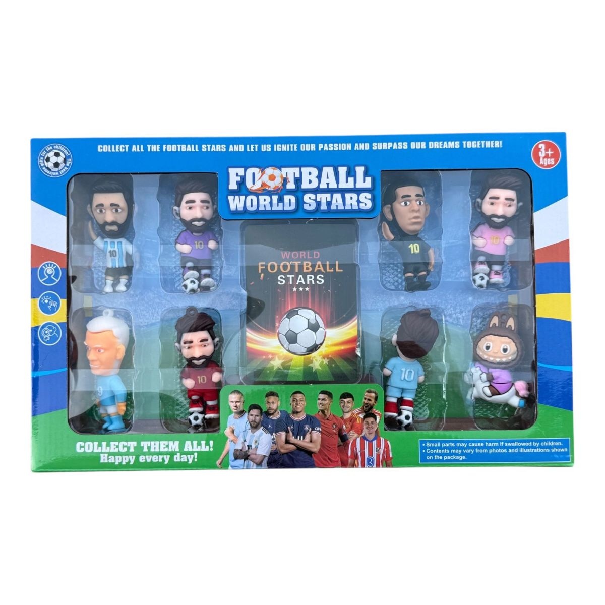 Set 7 figurine jucatori fotbal si o figurina bubu adorabil, multicolor, en-gros