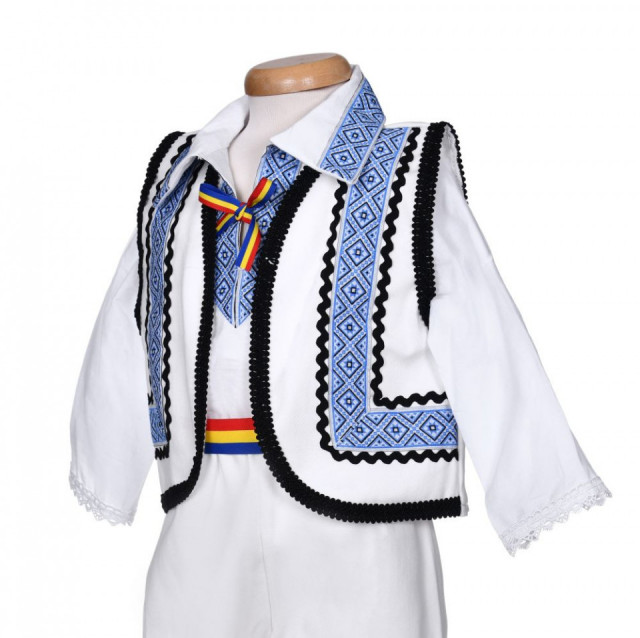 Set botez popular baiat, trusou botez landou, lumanare si costum national, Denikos® 1039 DESCRIERE Pentru a ne comunica marimea costumasului si orice alte detalii legate de livrarea trusoului, te vom contacta in maxim 48 ore de la inregistrarea comenzii in sistem. Set special creat pentru ceremonia de botez. Setul este alcatuit din trusou complet ambalat intr-o cutie tip landou decorata tradional, o lumanare asortata si un costum botez traditional baiat cu decor traditional realizat din materiale de cea mai buna calitate (100% bumbac). Setul contine 10 piese: - cutie de trusou in forma de landou; - prosop cu gluga pentru bebelus, dimensiuni 80 x 80 cm, 100% bumbac; - panza de mir, 100% bumbac; - prosop pentru preot, dimensiuni 30 x 50 cm, 100% bumbac; - fasa de botez, dimensiune 150 cm; - sticluta de mir, capacitate 100 ml; - sapunel; - cutiuta pentru suvita de par. - lumanare de botez (35 cm inaltime). - costum botez traditional. Costumul contine: camasuta, pantaloni, brau tricolor, vesta, botosei. Imaginea este cu titlu de prezentare si din acest motiv culorile pot sa difere in functie de display. De asemenea mici detalii precum fundita, broderia, dantela pot sa difere usor deoarece sunt realizate/asamblate manual in atelier, insa fara a afecta aspectul produsului.