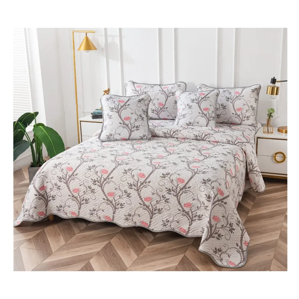 Cuvertura Pat din Bumbac este compusa din 5 piese si este realizata din bumbac 100%. Cuvertura de pat este rezistenta la spalari repetate. Pernele decorative creaza senzatia de confort si relaxare. Decoreaza dormitorul cu eleganta cuverturei de pat din bumbac. Pachetul cuverturii de pat contine 5 piese: Cuvertura 230 x 250 cm ± 5cm. 2 fete de perna 60 x 80 cm ± 5cm. 2 fete de perna 55 x 55 cm ± 5cm. Intretinere cuvertura pat: Se spala la 30°C automat; Se calca la max 120°C; Nu se folosesc inalbitori chimici. Fetele de perna sunt in functie de cum este taiat materialul.