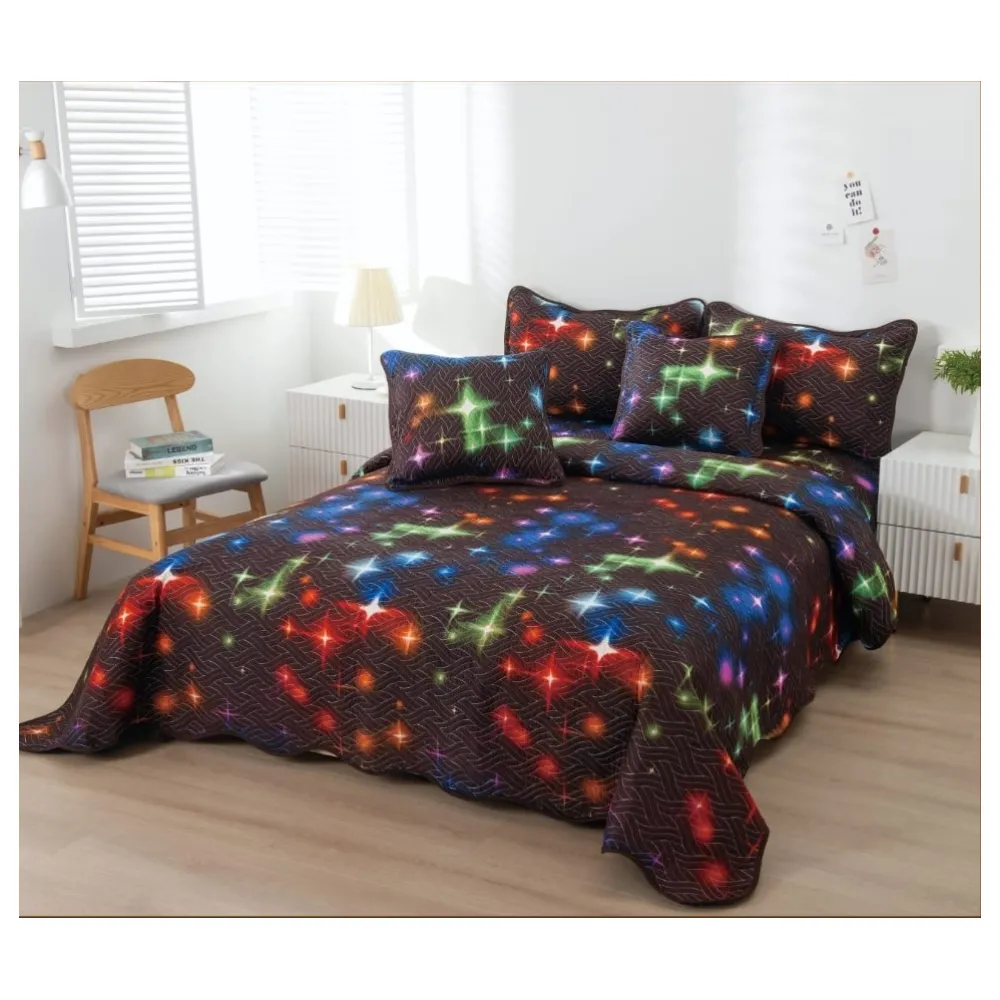 Cuvertura Pat din Bumbac este compusa din 5 piese si este realizata din bumbac 100%. Cuvertura de pat este rezistenta la spalari repetate. Pernele decorative creaza senzatia de confort si relaxare. Decoreaza dormitorul cu eleganta cuverturei de pat din bumbac. Pachetul cuverturii de pat contine 5 piese: Cuvertura 230 x 250 cm ± 5cm. 2 fete de perna 60 x 80 cm ± 5cm. 2 fete de perna 55 x 55 cm ± 5cm. Intretinere cuvertura pat: Se spala la 30°C automat; Se calca la max 120°C; Nu se folosesc inalbitori chimici. Fetele de perna sunt in functie de cum este taiat materialul.