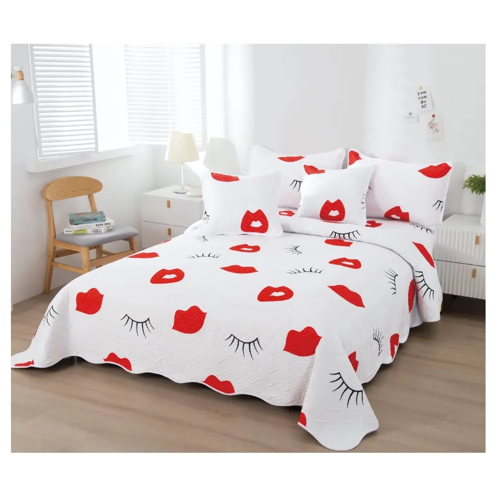 Cuvertura Pat din Bumbac este compusa din 5 piese si este realizata din bumbac 100%. Cuvertura de pat este rezistenta la spalari repetate. Pernele decorative creaza senzatia de confort si relaxare. Decoreaza dormitorul cu eleganta cuverturei de pat din bumbac. Pachetul cuverturii de pat contine 5 piese: Cuvertura 230 x 250 cm ± 5cm. 2 fete de perna 60 x 80 cm ± 5cm. 2 fete de perna 55 x 55 cm ± 5cm. Intretinere cuvertura pat: Se spala la 30°C automat; Se calca la max 120°C; Nu se folosesc inalbitori chimici. Fetele de perna sunt in functie de cum este taiat materialul.