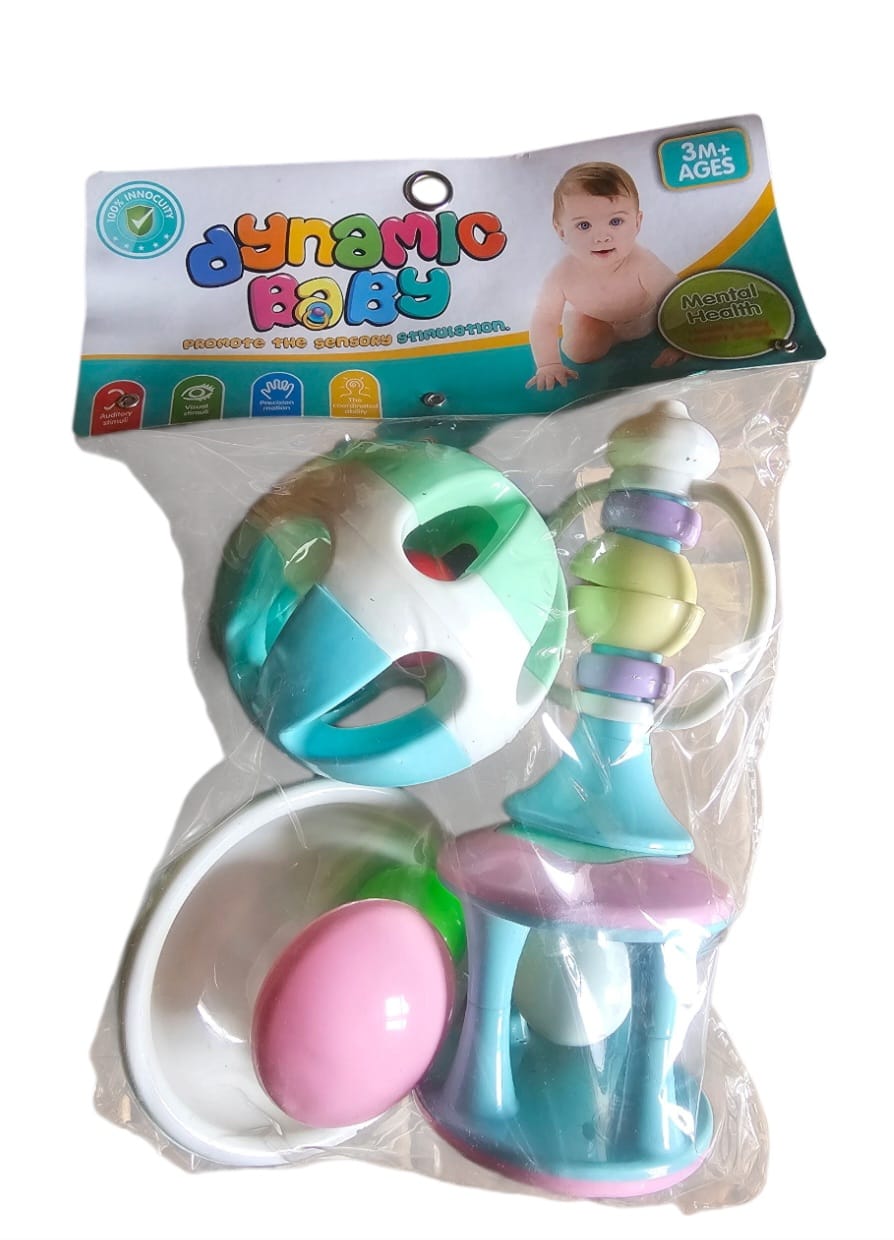Set Jucării Engros pentru Bebelusi „Dynamic Baby” – Diverse Forme (Bilă Zornăitoare, Forme de Prindere) și Culori Pastelate, Set 3 Piese, Ideal pentru Stimularea Senzorială și Dezvoltarea Abilităților Motorii (3M+), Perfect pentru Magazine de Jucării, Cadouri, Farmacii și Retaileri Online! Vă propunem spre vânzare engros acest set adorabil de jucării pentru bebeluși, o soluție excelentă pentru a oferi clienților un produs sigur, educativ și distractiv. Fiind un articol esențial pentru primii ani de viață ai copiilor, care încurajează stimularea senzorială și dezvoltarea motorie, este un produs atractiv pentru magazine de jucării, magazine de cadouri pentru bebeluși, farmacii, supermarketuri și retaileri online. Caracteristici și Beneficii Cheie pentru Partenerii Noștri: Set Diversificat: Include trei jucării diferite, o bilă zornăitoare, o jucărie cu inele și o formă de prindere/agitare, toate având culori pastelate și atractive (roz, verde mentă, albastru deschis, galben deschis, alb).Stimulare Senzorială: Jucăriile sunt concepute pentru a promova stimularea senzorială prin forme, culori și, probabil, sunete (fiind zornăitoare).Material Sigur: Fabricate din plastic, probabil non-toxic, potrivit pentru bebeluși. Ambalajul menționează 100% INNOCUOUS (inofensiv).Recomandat pentru Vârste Mici: Pe ambalaj este specificat 3M+ AGES, indicând că este potrivit pentru bebeluși de la 3 luni în sus.Ambalaj Atractiv: Setul este ambalat într-o pungă de plastic transparentă, cu un carton colorat deasupra, ilustrând un bebeluș fericit și numele produsului Dynamic Baby. De asemenea, este indicată promovarea Mental Health.Beneficii pentru Dezvoltare: Jucăriile ajută la dezvoltarea abilităților motorii fine, a coordonării mână-ochi, a simțului tactil și auditiv. Ideală pentru Diverse Segmente de Piață B2B: Magazine de Jucării: Un produs de bază pentru secțiunea dedicată bebelușilor și copiilor mici.Supermarketuri cu Secțiuni de Jucării/Produse Bebeluși: O opțiune populară pentru părinți și bunici.Farmacii și Drogherii: Adecvată ca produs de igienă și dezvoltare pentru bebeluși.Magazine de Cadouri pentru Bebelusi: Perfect pentru a fi inclus în seturi cadou.Retaileri Online: Potențial mare de vânzare online datorită utilității sale universale și a atractivității pentru părinți.
