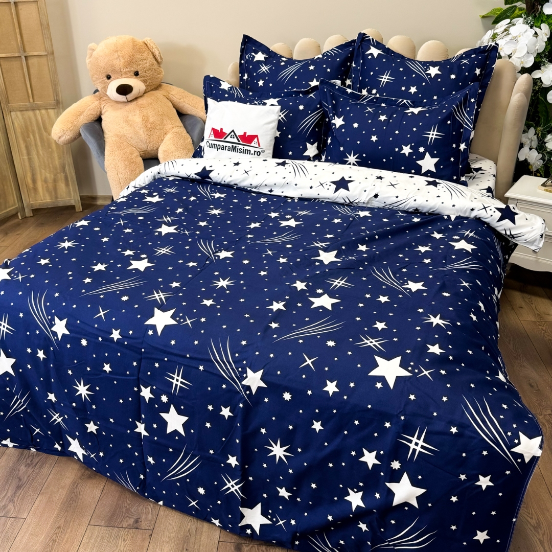 Set lenjerie de pat din bumbac finet, 8 piese, cu draperii incluse – Model fluturi Iti prezentam un set complet de lenjerie de pat din finet, format din 8 piese, inclusiv 2 draperii cu rejansa pentru o fixare usoara pe bara. Acest set unic are un design elegant si rafinat, care se regaseste atat pe lenjeria de pat, cat si pe draperii, oferind o armonie vizuala perfecta in dormitorul tau. Detalii produs:Material: 100% bumbac finet, cunoscut pentru textura sa moale si placuta la atingere