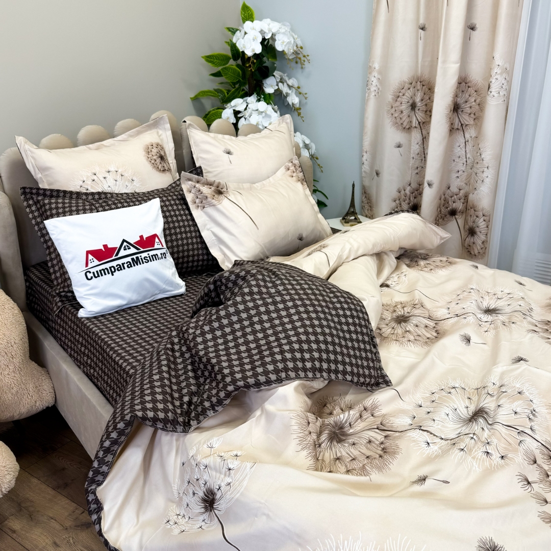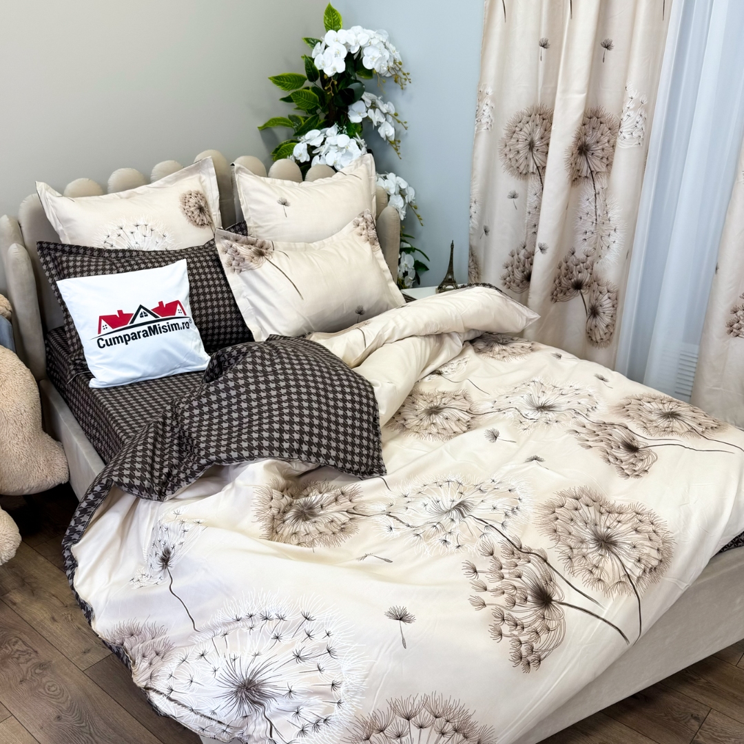 Set lenjerie de pat din bumbac finet, 8 piese, cu draperii incluse – Model fluturi Iti prezentam un set complet de lenjerie de pat din finet, format din 8 piese, inclusiv 2 draperii cu rejansa pentru o fixare usoara pe bara. Acest set unic are un design elegant si rafinat, care se regaseste atat pe lenjeria de pat, cat si pe draperii, oferind o armonie vizuala perfecta in dormitorul tau. Detalii produs:Material: 100% bumbac finet, cunoscut pentru textura sa moale si placuta la atingere