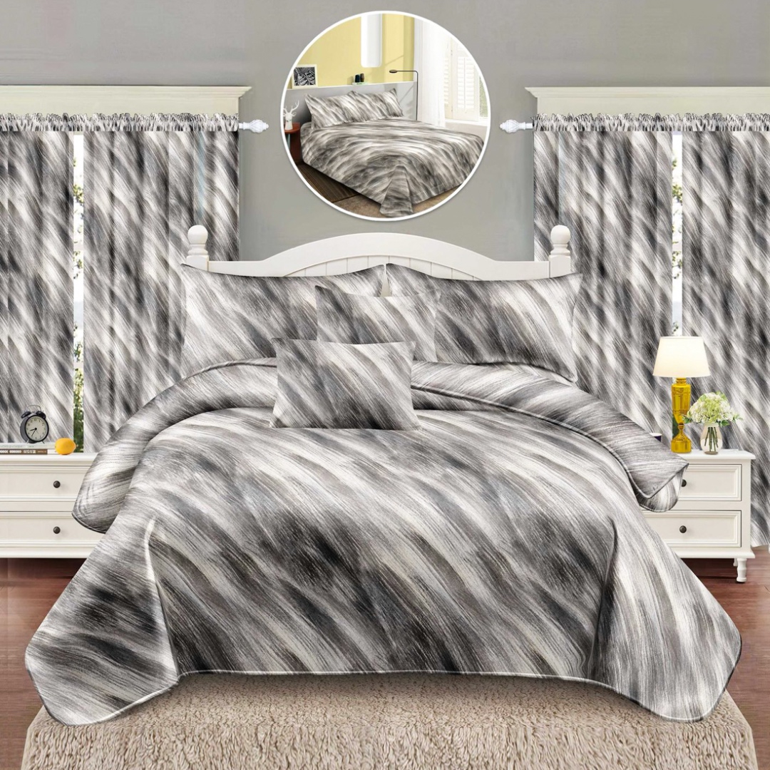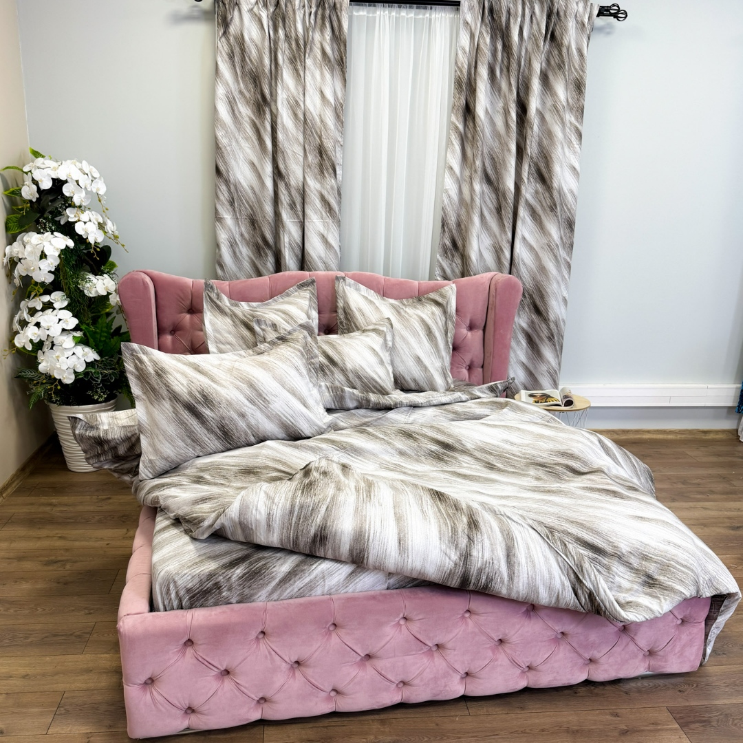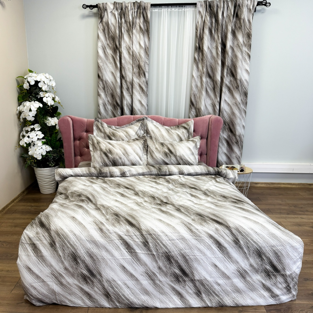 Set Lenjerie pat dublu (140x200cm, 160x200cm, 180x200cm) + 2 draperii, finet, 8 piese, Gri, Model Clasic