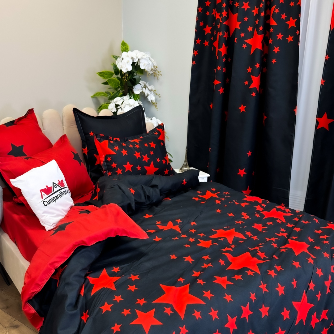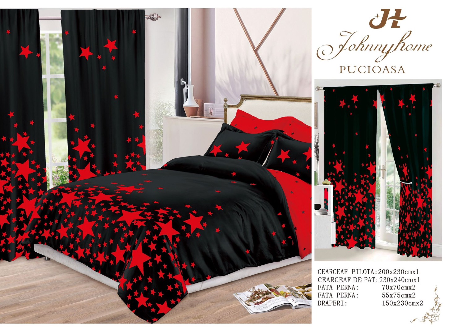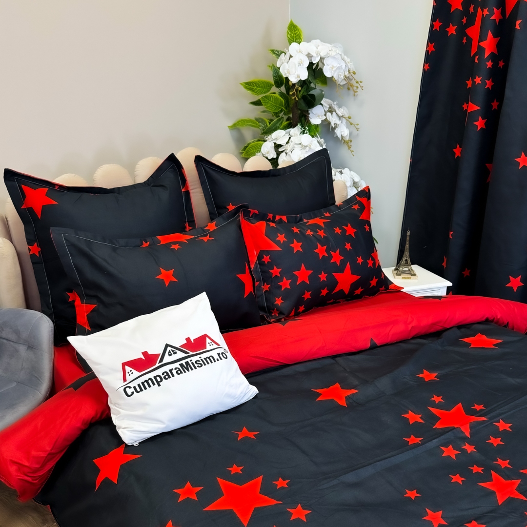 Set lenjerie de pat din bumbac finet, 8 piese, cu draperii incluse – Model fluturi Iti prezentam un set complet de lenjerie de pat din finet, format din 8 piese, inclusiv 2 draperii cu rejansa pentru o fixare usoara pe bara. Acest set unic are un design elegant si rafinat, care se regaseste atat pe lenjeria de pat, cat si pe draperii, oferind o armonie vizuala perfecta in dormitorul tau. Detalii produs:Material: 100% bumbac finet, cunoscut pentru textura sa moale si placuta la atingere