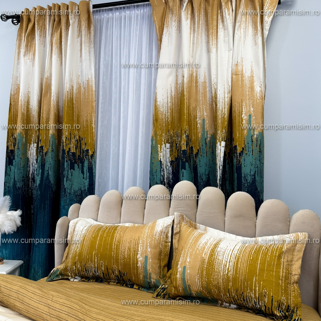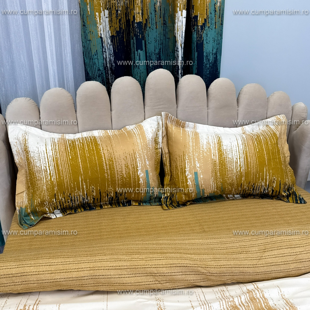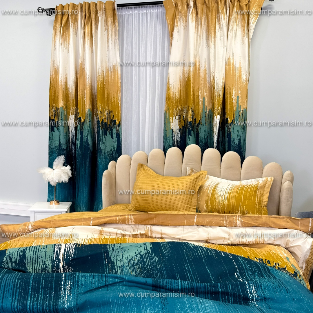 Set lenjerie de pat Matrimonial Compact (saltea 140x200 cm, pilota 160x200 cm) din bumbac finet, 6 piese, cu draperii incluse – Model fluturi Iti prezentam un set complet de lenjerie de pat din finet, format din 8 piese, inclusiv 2 draperii cu rejansa multifunctionala pentru o fixare usoara pe bara, dar si pe sina . Acest set unic are un design elegant si rafinat, care se regaseste atat pe lenjeria de pat, cat si pe draperii, oferind o armonie vizuala perfecta in dormitorul tau. Detal