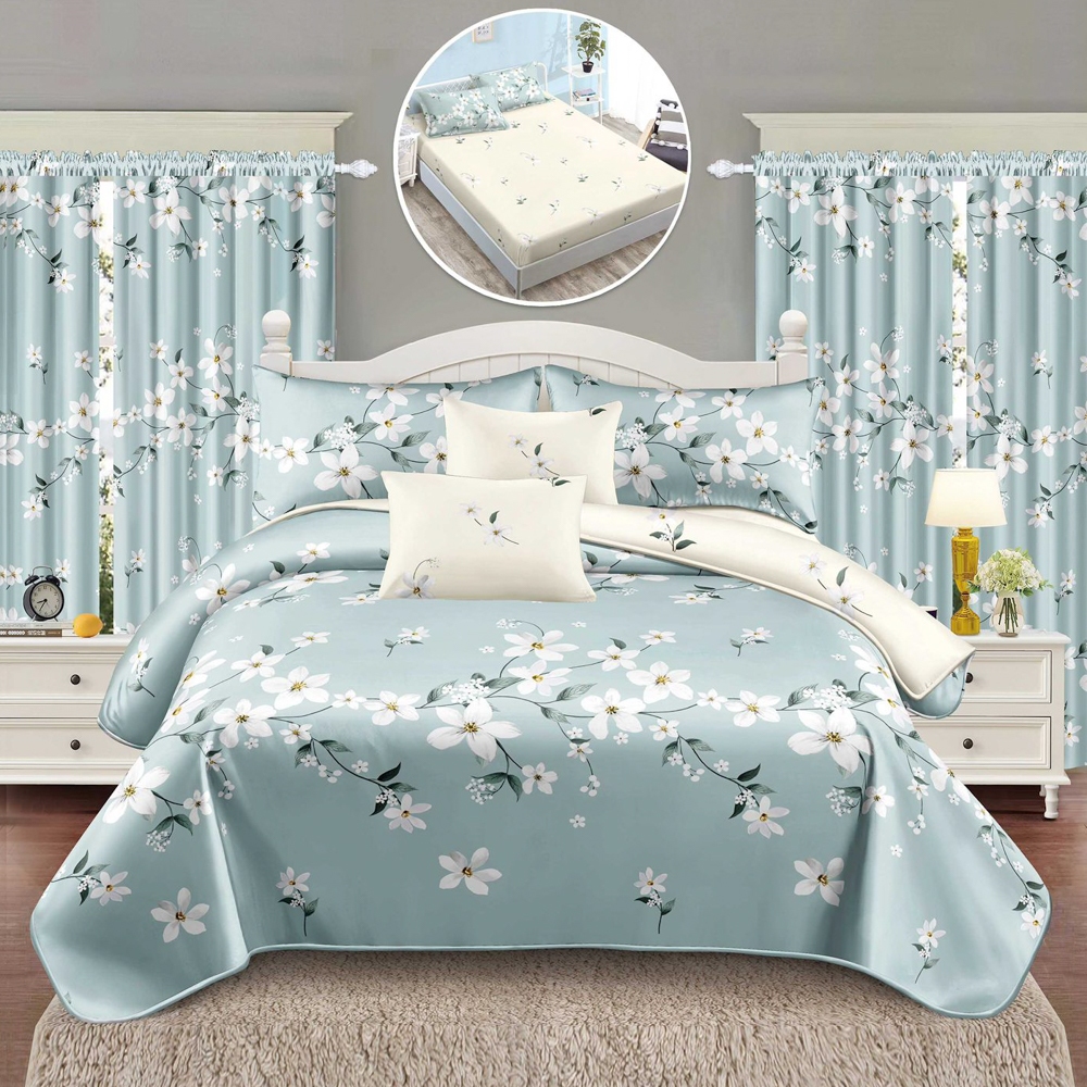 Set lenjerie de pat din bumbac finet, 8 piese, cu draperii incluse – Model fluturi Iti prezentam un set complet de lenjerie de pat din finet, format din 8 piese, inclusiv 2 draperii cu rejansa multifunctionala pentru o fixare usoara pe bara, dar si pe sina . Acest set unic are un design elegant si rafinat, care se regaseste atat pe lenjeria de pat, cat si pe draperii, oferind o armonie vizuala perfecta in dormitorul tau. Detalii produs:Material: 100% bumbac finet, cunoscut pentru text
