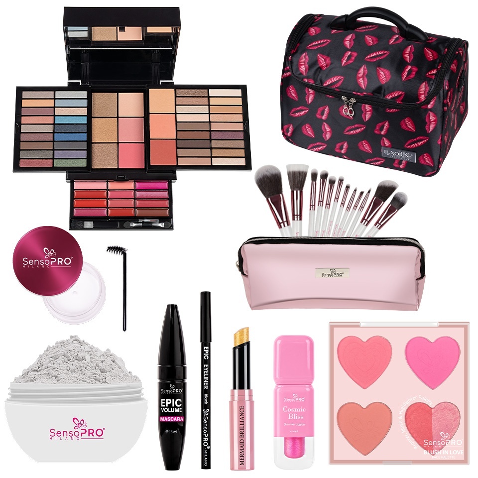 Fii pregatita sa atragi toate privirile cu Perfect Match– machiajul perfect pentru o seara plina de iubire! Setul Cupids Look este alegerea perfecta pentru un machiaj seducator. ✅ 1 x Burete Machiaj Infallible Love SensoPRO Milano – pentru un finisaj uniform si impecabil al fondului de ten.✅ 1 x Eyeliner Carioca cu Stampila 2 în 1 Perfect Cat Eyes SensoPRO Milano – Linii precise într-un singur pas.✅ 1 x Mascara Drama Lash SensoPRO Milano – Volum intens si definire dramatica pentru gene de vis.