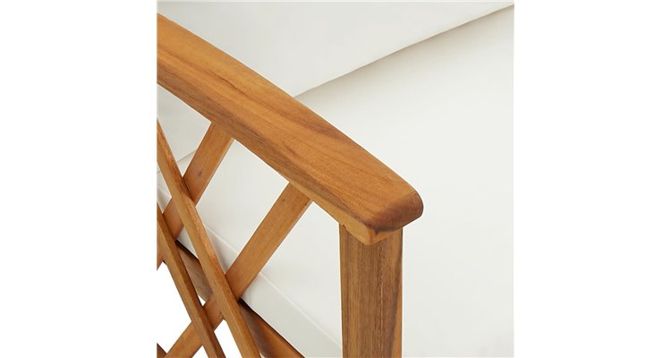 Setul de mobilier de gradina din lemn adauga un aspect vintage si este special conceput pentru gradina, curte sau alt spatiu de exterior! Acest set de mobilier pentru exterior este construit din lemn masiv de acacia, cu finisaj de ulei, fiind stabil si durabil. Pernele groase pentru sezut si spatar fac setul moale si confortabil. Datorita blatului din lemn masiv, cu un design cu sipci, masuta de cafea va ofera spatiu pentru a va aseza gustarile, cosurile cu fructe, obiectele decorative, precum si alte elemente necesare. Spatarul si cotierele usor curbate ofera confort suplimentar la sedere bancii si scaunului. Nota importanta: Culorile si granulatia variaza de la o piesa la alta, fiecare dintre acestea fiind unica. De asemenea, livrarea este aleatorie.Culoare perna: Alb cremMaterial: Lemn masiv de acacia cu finisaj de uleiDimensiuni masa: 102 x 50 x 43 cm (L x l x i)Dimensiuni banca: 119 x 67 x 83 cm (L x l x i)Dimensiuni scaun: 59 x 67 x 83 cm (l x ad. x i)Dimensiuni sezut bancheta: 110 x 84,5 cm (l x ad.)Dimensiuni sezut scaun: 50 x 48,5 cm (l x ad.)Inaltime sezut banca/scaun fata de sol: 34 cmAsamblare necesara: DaPachetul de livrare contine:2 x Scaun de gradina2 x Banca de gradina1 x Masuta de cafea6 x Perna de sezut6 x Perna de spatar
