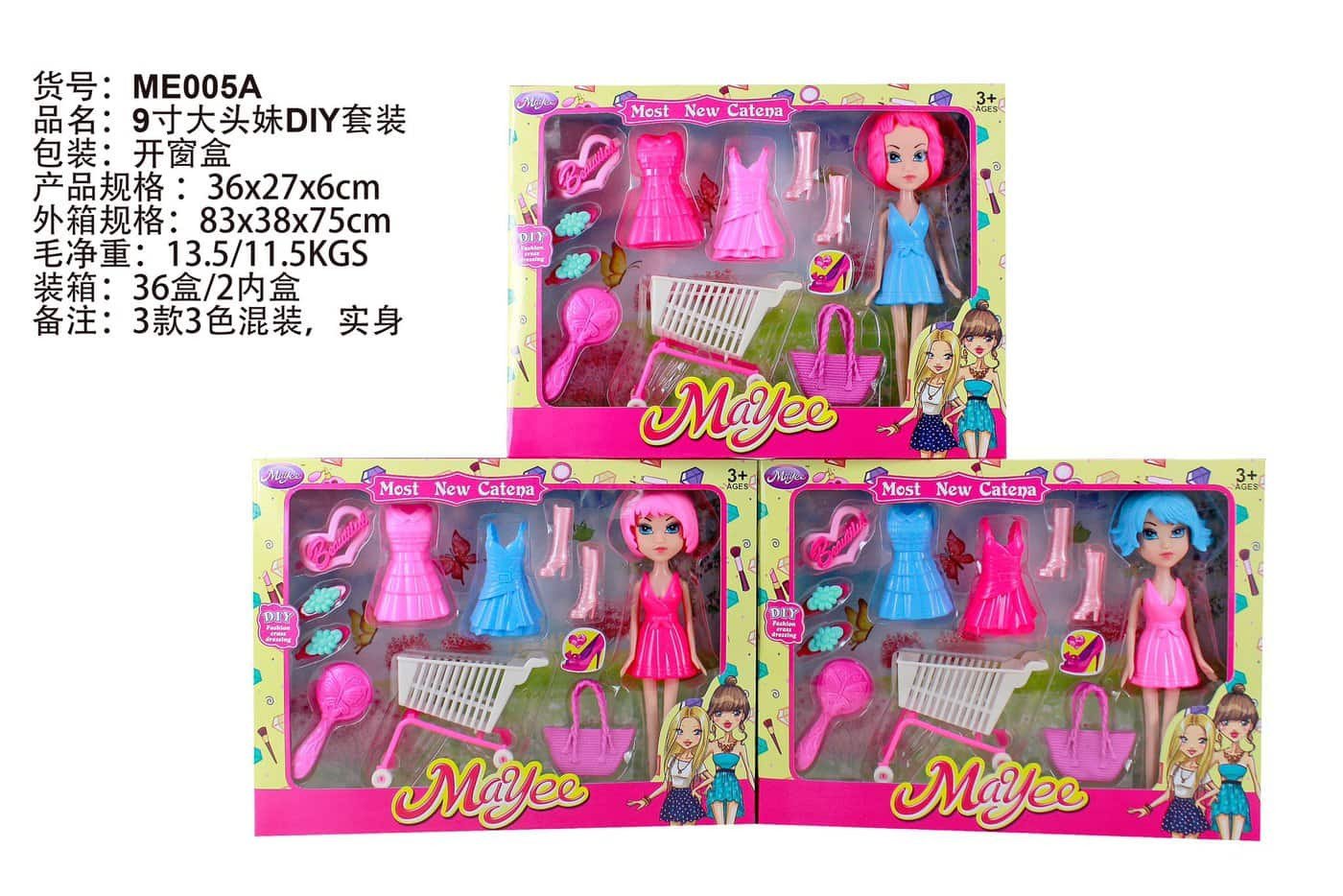 Set Papusa si Carucior pentru cumpărături, rochite de schimb si alte accesorii, Mayee, 36×27×6cm, multicolor, +3ani, Engros