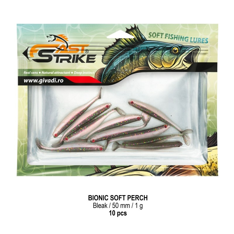 Fast Strike Bionic Soft Perch 5 cm / 1 g este una dintre cele mai prinzătoare năluci pentru biban , testată intens pe apele din România și apreciată de pescarii experimentați pentru eficiența ei remarcabilă. Datorită unui proces tehnologic avansat , aceste shad-uri oferă o evoluție extrem de naturală, greu de egalat în categoria lor. Materialul foarte moale imită perfect peștii pradă, iar detaliile precum solzii în miniatură , ochii 3D irezistibili și coada care produce vibrații fine transformă această nălucă într-o armă redutabilă în pescuitul cu micro jiguri . Gama variată de culori gliterate funcționează excelent atât ziua, cât și seara, când vibrația subtilă atrage nu doar bibanii activi, ci și bonușuri mari precum șalău, știucă sau avat. Nălucile sunt impregnate cu miros natural atractiv și sunt ambalate în pungi cu fermoar , cu tavă rigidă în interior, pentru a păstra forma perfectă a corpului și flexibilitatea în timp. ⭐ Caracteristici: ? Tip nălucă: shad ? Model: Fast Strike Bionic Soft Perch ? Material: silicon moale, ultra-flexibil ? Imitație realistă de pește pradă ? Coada produce vibrație subtilă – agresivă și irezistibilă ?️ Ochi 3D și detalii realiste (solzi miniaturali) ? Lungime: 5cm ⚖️ Greutate: 1g ? Culoare: Bleak 007 ? Aroma: miros natural atractiv ? Ambalaj: 10 buc / blister + tavă rigidă ? Ideală pentru biban , dar eficientă și la șalău, știucă, avat