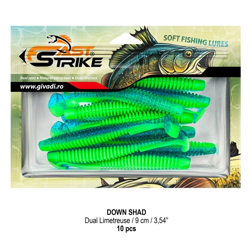 Fast Strike Down Shad Dual Limetreuse 9cm este o nălucă soft versatilă, destinată pescuitului tuturor speciilor de răpitori — șalău, știucă, somn, biban și avat . Concepută pentru performanță maximă, această momeală oferă o acțiune naturală, echilibrată și vizibilitate excelentă chiar și în ape tulburi, datorită culorii sale Dual Limetreuse, extrem de atractive pentru pești. Forma alungită, cu striații laterale adânci , amplifică vibrațiile și provoacă atacurile chiar și în perioadele de apatie totală. Coada este prevăzută cu kilă integrată în faza de turnare, care stabilizează năluca și îi oferă o mișcare controlată și realistă în timpul recuperării. Poate fi utilizată cu succes pe multiple monturi — jig clasic, Cheburashka, Texas sau offset — fiind ideală în apropierea structurilor scufundate, unde alte momeli tind să se agațe. Materialul moale, dar rezistent, asigură durabilitate ridicată, iar aroma intensă de peștișor pradă crește puterea de atracție. Ambalajul resigilabil cu tavă rigidă de protecție păstrează forma și calitatea nalucilor pentru o perioadă îndelungată. Caracteristici: ? Tip nălucă: shad soft versatil ? Specii vizate: șalău, știucă, somn, biban, avat ⚙️ Material: silicon moale, rezistent și aromat ? Acțiune: vibrație amplificată prin striațiile corpului Monturi compatibile: jig, Cheburashka, offset, Texas rig ? Detaliu tehnic: kilă integrată pentru stabilitate perfectă ? Aromă: peștișor pradă natural ? Lungime: 9 cm ? Culoare: Dual Limetreuse ? Ambalaj: blister cu tavă protecție și fermoar, 10 bucăți
