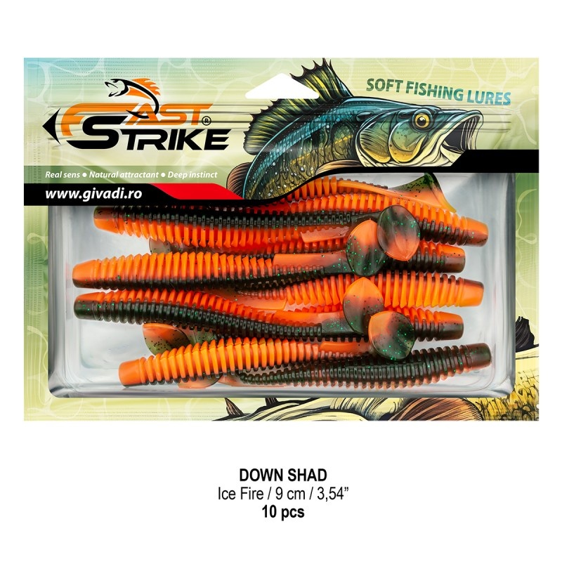 Fast Strike Down Shad Ice Fire 9cm este o nălucă soft versatilă, destinată pescuitului tuturor speciilor de răpitori — șalău, știucă, somn, biban și avat . Concepută pentru performanță maximă, această momeală oferă o acțiune naturală, echilibrată și vizibilitate excelentă chiar și în ape tulburi, datorită culorii sale Ice Fire, extrem de atractive pentru pești. Forma alungită, cu striații laterale adânci , amplifică vibrațiile și provoacă atacurile chiar și în perioadele de apatie totală. Coada este prevăzută cu kilă integrată în faza de turnare, care stabilizează năluca și îi oferă o mișcare controlată și realistă în timpul recuperării. Poate fi utilizată cu succes pe multiple monturi — jig clasic, Cheburashka, Texas sau offset — fiind ideală în apropierea structurilor scufundate, unde alte momeli tind să se agațe. Materialul moale, dar rezistent, asigură durabilitate ridicată, iar aroma intensă de peștișor pradă crește puterea de atracție. Ambalajul resigilabil cu tavă rigidă de protecție păstrează forma și calitatea nalucilor pentru o perioadă îndelungată. Caracteristici: ? Tip nălucă: shad soft versatil ? Specii vizate: șalău, știucă, somn, biban, avat ⚙️ Material: silicon moale, rezistent și aromat ? Acțiune: vibrație amplificată prin striațiile corpului Monturi compatibile: jig, Cheburashka, offset, Texas rig ? Detaliu tehnic: kilă integrată pentru stabilitate perfectă ? Aromă: peștișor pradă natural ? Lungime: 9 cm ? Culoare: Ice Fire ? Ambalaj: blister cu tavă protecție și fermoar, 10 bucăți