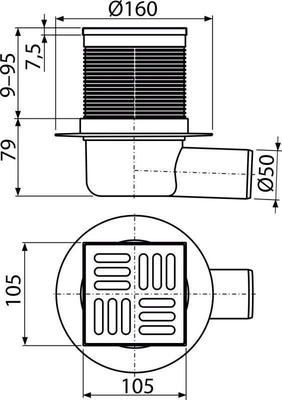 Aplicabilitate: Sifon pardoseală 105×105/50 mm ieşire laterală, grătar oţel inoxidabil, sistem de reţinere a mirosurilor combinat SMART APV31 alcadrain Pentru spaţii tehnice în care utilizarea sifonului nu se face des sau la interval regulat (spălătorie, cameră centrală, pivnițe) Pentru evacuarea apei din incinta de duș Acces pentru scaune cu rotile Caracteristici / Specificatii Tehnice: Grătar din oţel inoxidabil 102×102×5 mm Guler reglabil pe înălțime 9–95 mm Guler de izolație pentru conectarea la sistemul de impermeabilizare al clădirii Conectare laterală la evacuare – Ø50 mm Sifon anti miros combinat SMART Coloană de apă și clapeta mecanică previn eficient mirosurile din canalizare Compatibilitatea cu sifoanele de pardoseală include sifon anti-miros SMART, umed sau uscat Material: polipropilenă rezistentă la șocuri mecanice, chimice sau termice Material: otel inoxidabil AISI 304, DIN 1.4301 Debit de apă admis de grătar 37 l/min Sifon anti miros 30 mm Clasa de sarcină – K3 300 kg Diametrul țevii Deșeuri 50 mm Înălțime totală de instalare 88 – 174 mm Descarcari: