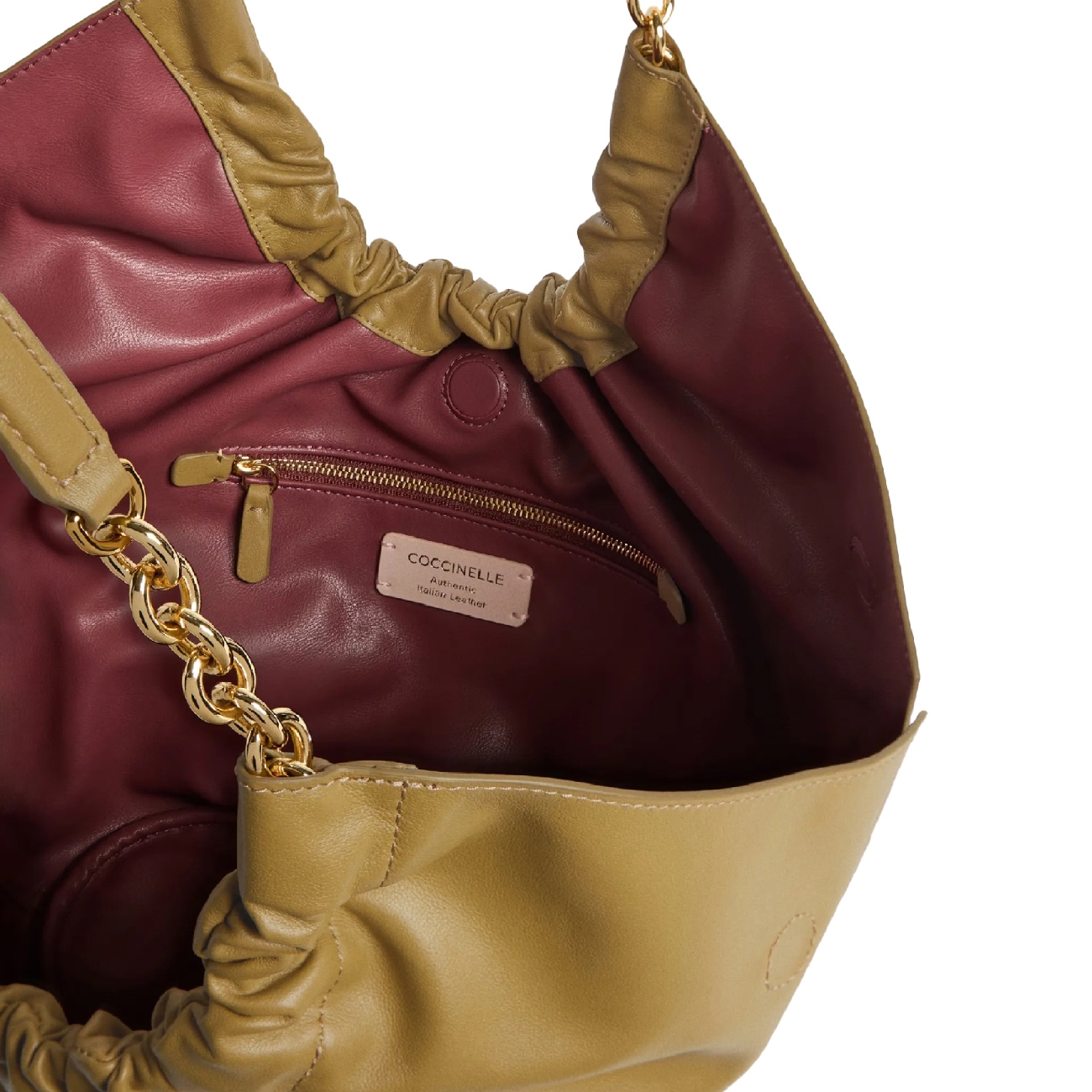 Smash Medium exprimă o estetică contemporană și feminină, definită de linii fluide și un volum generos. Realizată din piele netedă, tratată cu uleiuri speciale pentru a obține o textură moale și plăcută la atingere, aceasta își păstrează aspectul natural și oferă o bună rezistență la factorii externi datorită finisajului protector. Lanțul metalic adună delicat pielea, creând pliuri suple, iar inserția din piele adăugată pe lanț sporește confortul la purtare. Logo-ul C Me completează designul, iar interiorul cu două buzunare, dintre care unul cu fermoar, asigură organizare practică pentru utilizarea zilnică.