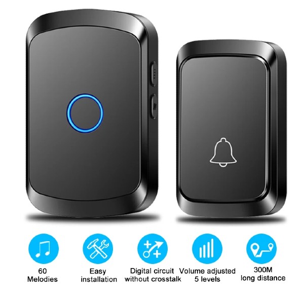 Sonerie Wireless cu raza 30 de metri Aceasta sonerie este ideala pentru apartamentele de la blocuri sau pentru cei care locuiesc la casa. Avantajul soneriei este sistemul fara fir - wireless, instalarea este usoara si nu necesita gaurirea peretilor. Buton rezistent la umezeala si ploaie Distanta maxim 30 metri Soneria are un consum redus de energie In medie bateriile rezista aproximativ 1 an Soneria dispune de 60 de tonuri muzicale Volum ajustabil: 5 niveluri Functioneaza pe baterii - neincluse