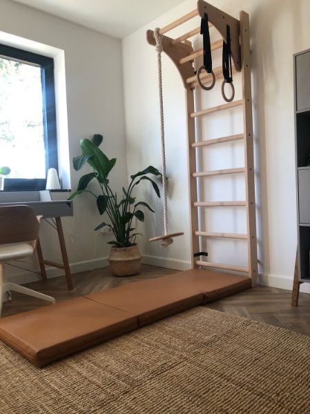 Spalier BenchK 111+ A204, din lemn masiv de fag cu bara de tractiuni si accesorii de gimnastica,ideal pentru antrenamentul abdomenului, spatelui si bratelor. Spalierele de perete BenchK nu trec niciodată neobservate. Când sunt așezate lângă pat, îți amintesc de ritualurile tale de dimineață; langa zona de lucru - pentru a face pauze active, langa aparatul de cafea - pentru a amesteca munca si placerea, in facilitatile publice - pentru a profita la maximum de timpul inactiv.Cu barele de perete BenchK există timp pentru orice - pentru a lucra la visele tale și pentru a-ți trăi „timpul meu” și timpul familiei. Spalierele de perete BenchK sunt concepute pentru a fi tovarășul tău de viață.Acest instrument de exercițiu versatil oferă o oportunitate de antrenament complet pentru greutatea corporală, cu o gamă largă de opțiuni de exerciții - flexia și extensia coloanei vertebrale, mobilitatea articulațiilor, antrenamentul de forță, condiționarea de bază, întindere, picioare, cardio, antrenament TRX și multe altele. Pentru cei care cred cu adevărat că exercițiul nu ar trebui să fie ocazional, ci mai degrabă o rutina de zi cu zi. Accesorii:Bară de tracțiune din lemn, reglabilă, inele de gimnastică și o frânghie de cățărat cu leagăn.Datorită construcției detașabile a barei de tragere, aceasta poate fi poziționată pe diferite trepte și ajustată la înălțimea utilizatorului.Cu bara de tracțiuneputeți efectua o gamă largă de exerciții de condiționare a nucleului, spatelui și umerilor.Pentru a profita la maximum, asociați-l cu un masa BenchK (nu este inclus), pentru a crea un birou de lucru și pentru a economisi mai mult spațiu în zona dvs. de zi.Inelele sunt realizate din placaj de fag și sunt atârnate pe curele negre. Lustruite la perfecțiune, inelele sunt netede și sigure pentru mâini. Curelele sunt echipate cu catarame care permit reglarea rapidă a lungimii, precum și îndepărtarea ușoară. Pe măsură ce copilul crește, inelele pot fi folosite ca curele TRX.Coarda este încurcată manual în secțiunea superioară într-o formă de buclă și asigurată chiar în partea de jos, eliminând nevoia de elemente metalice și plastice. Poate fi folosit pentru alpinism sau ca leagăn.
