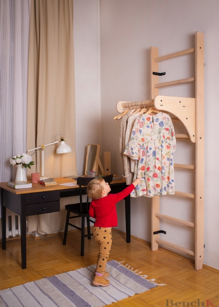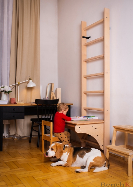 Spalier BenchK 112, din lemn masiv de fag cu bara de tractiuni si masa birou,ideal pentru antrenamentul abdomenului, spatelui si bratelor. Spalierelede perete multifuncționale BenchK se potrivesc perfect într-o casă modernă, birou, sală de sport, studio de fitness sau yoga, centru de reabilitare, cameră de hotel sau orice altă zonă publică.Barele de perete BenchK se îmbină perfect cu aspectul oricărei încăperi datorită designului său elegant și minimalist, acordând prioritate formelor simple, culorilor și texturilor naturale.Acest instrument de exercițiu versatil oferă o oportunitate de antrenament complet pentru greutatea corporală, cu o gamă largă de opțiuni de exerciții - flexia și extensia coloanei vertebrale, mobilitatea articulațiilor, antrenamentul de forță, condiționarea de bază, întindere, picioare, cardio, antrenament TRX și multe altele.Uneori o schimbare de muncă este cea mai bună odihnă. Scara de gimnastică BenchK se poate transforma cu ușurință de la echipament de antrenament sau de joacă la un birou de lucru în câteva secunde. Cine a spus că nu poți avea totul? Accesorii:Bară de tractiunidin lemn reglabilă, blat.Datorită construcției detașabile a barei de tragere, aceasta poate fi poziționată pe diferite trepte și ajustată la înălțimea utilizatorului.Cu bara de tragere puteți efectua o gamă largă de exerciții de condiționare a nucleului, spatelui și umerilor.Biroul BenchK este realizat din lemn de fag. Blatul de banc este plasat pe bara de tragere și împreună creează un birou elegant și funcțional pentru un copil sau un adult. Biroul este ideal pentru iubitorii de minimalism, deoarece permite economisirea multor spațiu prin combinarea antrenamentului cu zona de lucru.Înălțimea biroului poate fi reglată în funcție de înălțimea utilizatorului.