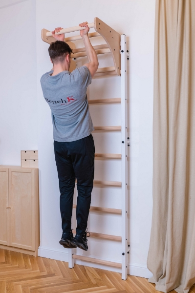 Spalier BenchK 711W, din lemn fag cu bara de tractiune reglabila,ideal pentru antrenamentul abdomenului, spatelui si bratelor. Când designul este făcut corect, nu trebuie să alegeți între estetică și funcționalitate. Aceste spaliere de perete se pot potrivi perfect în orice interior datorită unui amestec bine gândit de oțel mat cu lemn de fag. Nu este nevoie să-l ascundeți în garaj.Spalierele de perete multifuncționale BenchK se potrivesc perfect într-o casă modernă, birou, sală de sport, studio de fitness sau yoga, centru de reabilitare, cameră de hotel sau orice altă zonă publică.Acest instrument de exerciții versatil oferă un antrenament complet cu greutatea corporală, cu o gamă largă de opțiuni de exerciții - flexia și extensia coloanei vertebrale, mobilitate articulară, antrenament de forță, condiționare de bază, întindere, picioare, cardio, antrenament TRX și multe altele. Accesorii:Bară de tractiune din lemn reglabilă.Datorită construcției detașabile a barei de tragere, aceasta poate fi poziționată pe diferite trepte și ajustată la înălțimea utilizatorului.Puteți efectua o gamă largă de exerciții de condiționare de bază, spate și umeri.De asemenea, permite efectuarea de intinderi a coloanei vertebrale, antrenament de mobilitate si rezistenta, atunci cand i se ataseaza curele sau benzi de rezistenta.Înălțimi și unghiuri diferite ale treptelor din lemn vă permit să reglați intensitatea întinderilor, precum și rezistența și tensiunea pe care doriți să le aplicați în funcție de nevoile corpului dumneavoastră.Pentru a profita la maximum, asociați-l cu un blat BenchK (nu este inclus), pentru a crea fie un birou de lucru în picioare, fie în picioare și pentru a economisi și mai mult spațiu în zona dvs. de zi.
