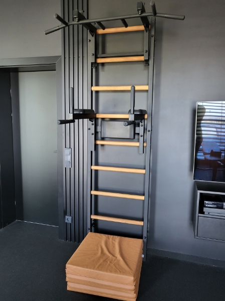 Spalier BenchK 732B, cu bara de tractiune convertibila din otel cu 6 manere, bara joasa cu suport pentru spate,ideal pentru antrenamentul abdomenului, spatelui si bratelor. Echipament multifuncțional care economisește spațiu, cu un design inovator și elegant. Va fi util pentru antrenamentul cu greutatea corporală de toate tipurile, fie că este vorba de forță, rezistență, mobilitate sau întindere.Spalierele de perete BenchK se potrivesc perfect într-o locuință modernă, dar respectă și standardele UE de siguranță pentru echipamentele profesionale de gimnastică. Sunt certificate pentru utilizare în instituții publice, inclusiv săli de sport profesionale, centre de antrenament al forțelor armate, hoteluri, școli, spitale și multe altele. Accesorii:Bară de tracțiune din oțel reglabilă cu 6 prinderi, bară joasa cu suport pentru spateBara de tractiune are cârlige căptușite cu pâslă pentru a preveni marcarea treptelor din lemn. Datorită construcției sale detașabile, bara de tragere poate fi poziționată pe diferite trepte și ajustată la înălțimea utilizatorului. Bara de tragere are șase mânere anti-alunecare, ceea ce permite o gamă largă de tipuri diferite de trageri, precum și exerciții de condiționare a miezului, spatelui și umerilor.Când este rotit cu 90 de grade, poate fi folosit ca suport pentru spate.Cotierele stației cu bară de scufundare și suportul pentru spate sunt realizate din spumă poliuretanică integrală. Acest lucru le garantează durabilitatea, ușurința de curățare și aspectul modern.Atât bara de scufundare, cât și bara de tragere pot fi ajustate la înălțimea utilizatorului sau pot fi îndepărtate complet, dacă este necesar.