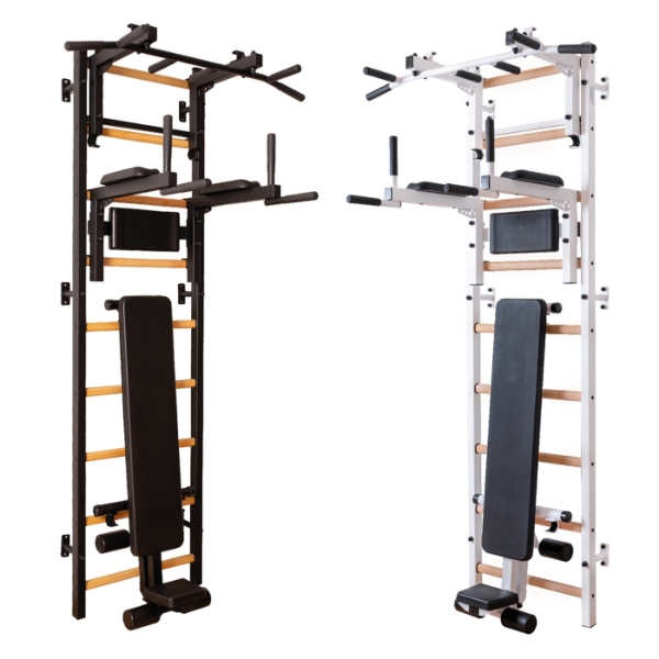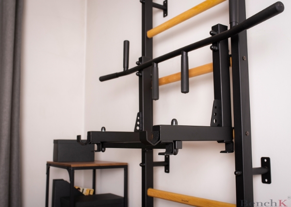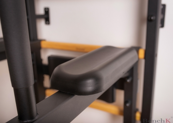 Spalier BenchK 733B, cu bara de tractiune cu 6 manere, bara joasa suport pentru spate si banca antrenament,ideal pentru antrenamentul abdomenului, spatelui si bratelor. Când designul este făcut corect, nu trebuie să alegeți între estetică și funcționalitate. Aceste spalierr de perete se pot potrivi perfect în orice interior datorită unui amestec bine gândit de oțel mat cu lemn de fag. Nu este nevoie să-l ascundeți în garaj.Spalierele de perete BenchK se potrivesc perfect într-o locuință modernă, dar respectă și standardele UE de siguranță pentru echipamentele profesionale de gimnastică. Sunt certificate pentru utilizare în instituții publice, inclusiv săli de sport profesionale, centre de antrenament al forțelor armate, hoteluri, școli, spitale și multe altele.Acest mobilier sportiv versatil oferă un antrenament pentru întregul corp cu o gamă largă de opțiuni de exerciții - flexia și extensia coloanei vertebrale, mobilitate articulară, antrenament de forță, condiționare de bază, întindere, picioare, cardio, antrenament TRX și multe altele. Accesorii:Bară de tracțiune din oțel reglabilă cu 6 mânere, bară joasa cu suport pentru spate, bancă de antrenament.Bara de tractiune are cârlige căptușite cu pâslă pentru a preveni marcarea treptelor din lemn. Datorită construcției sale detașabile, bara de tragere poate fi poziționată pe diferite trepte și ajustată la înălțimea utilizatorului. Bara de tractiune are șase mânere anti-alunecare, ceea ce permite o gamă largă de tipuri diferite de trageri, precum și exerciții de condiționare a miezului, spatelui și umerilor.Când este rotit cu 90 de grade, poate fi folosit ca suport pentru spate.Cotierele stației cu bară de scufundare și suportul pentru spate sunt realizate din spumă poliuretanică integrală. Acest lucru le garantează durabilitatea, ușurința de curățare și aspectul modern.Atât bara joasa cât și bara de tractiune pot fi ajustate la înălțimea utilizatorului sau pot fi îndepărtate complet, dacă este necesar.Bancă reversibilă cu scaun suplimentar și patru role de sprijin pentru picioare. Suportul pentru spate, scaunul suplimentar și rolele de susținere a picioarelor sunt realizate în întregime din poliuretan (PU) fără a folosi piele sintetică sau spumă. Banca permite o varietate de exerciții abdominale, variații de apăsare cu mrenă sau exerciții cu gantere.