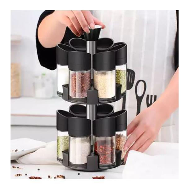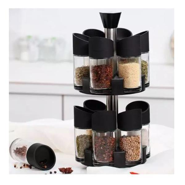Set 12 recipiente pentru condimente cu suport rotati Un set ideal in orice bucatarie! Recipientele sunt fabricate din material de calitate superioara, pentru a asigura o maxima igiena si beneficiaza de finisaje deosebit de fine si de bine realizate. Recipientele sunt confectionate din plastic, cu filet pentru o buna etanseizare. Capacele sunt dotate cu 2 tipuri de gauri pentru dozare fina sau mare. Suportul se roteste 360′. suport rotativ ergonomic 12 recipiente + 1 suport rotativ cu maner pentru transport cate 6 recipiente pe un nivel al suportului recipientele pentru condimente sunt realizate din plastic capacele au 2 tipuri de gauri dimensiune recipient: 115 x 50 mm sunt usor de folosit, de spalat si de curatat condimentele se pot pune in recipient usor, prin defiletarea capacului