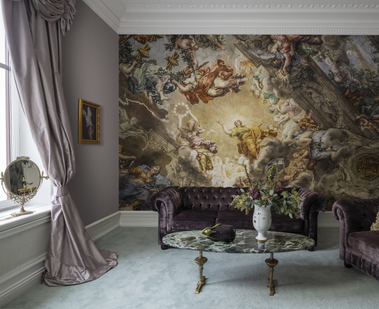 Bine și rău, deschis și întunecat - totul este prezent în acest tablou minunat plictat cu tehnica fresco-ului avansată. Ceea ce este clar este lupta pentru dreptate combinată cu elementele pline de speranță ale vieții. Montează acest fototapet pe tavanul camerei tale, pune o canapea sub el și pregătește-te să-ți petreci nenumărate ore descifrând mesajul acestui mural captivant.