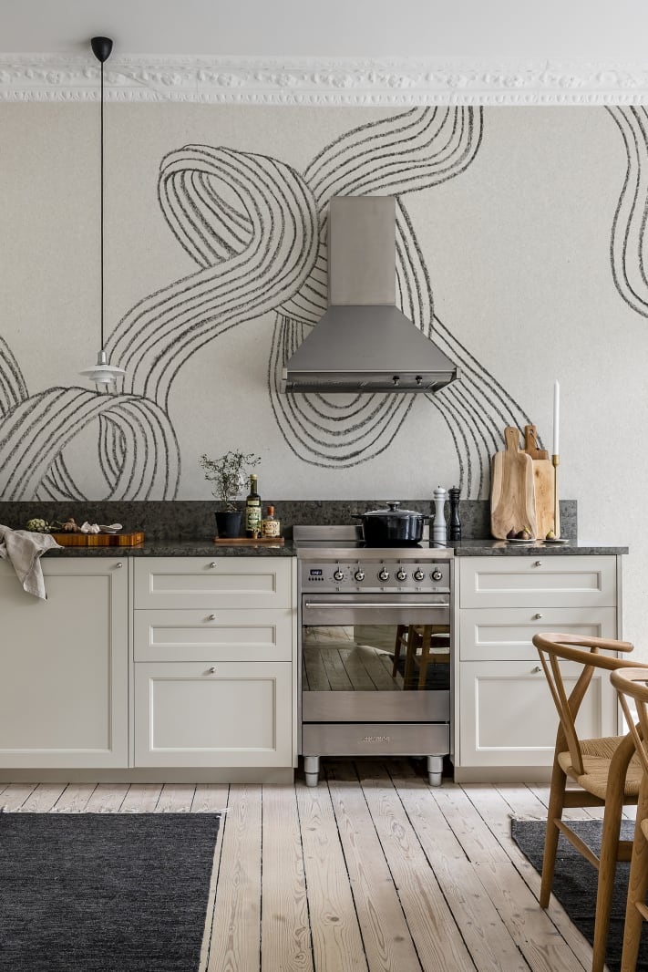 Acest model grafic în grafit face o impresie îndrăzneață și artistică, creând o declarație puternică pentru orice casă contemporană.