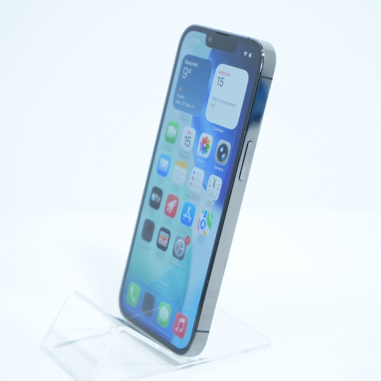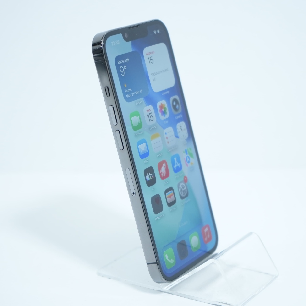 Ecran: 6.1, Refresh Rate 120 Hz Procesor: Apple A15 Bionic Memorie RAM: 6GB Memorie interna: 128GB Camera Foto: Principala 12 MPx, Frontala 12 MPx Stare retea: Liber de retea