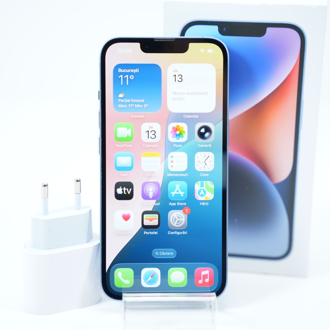 Ecran: 6.1 Procesor: Apple A15 Bionic Memorie RAM: 6GB Memorie interna: 128GB Camera foto: Principala 12 MPx, Frontala 12 MPx Stare retea: Liber de rețea