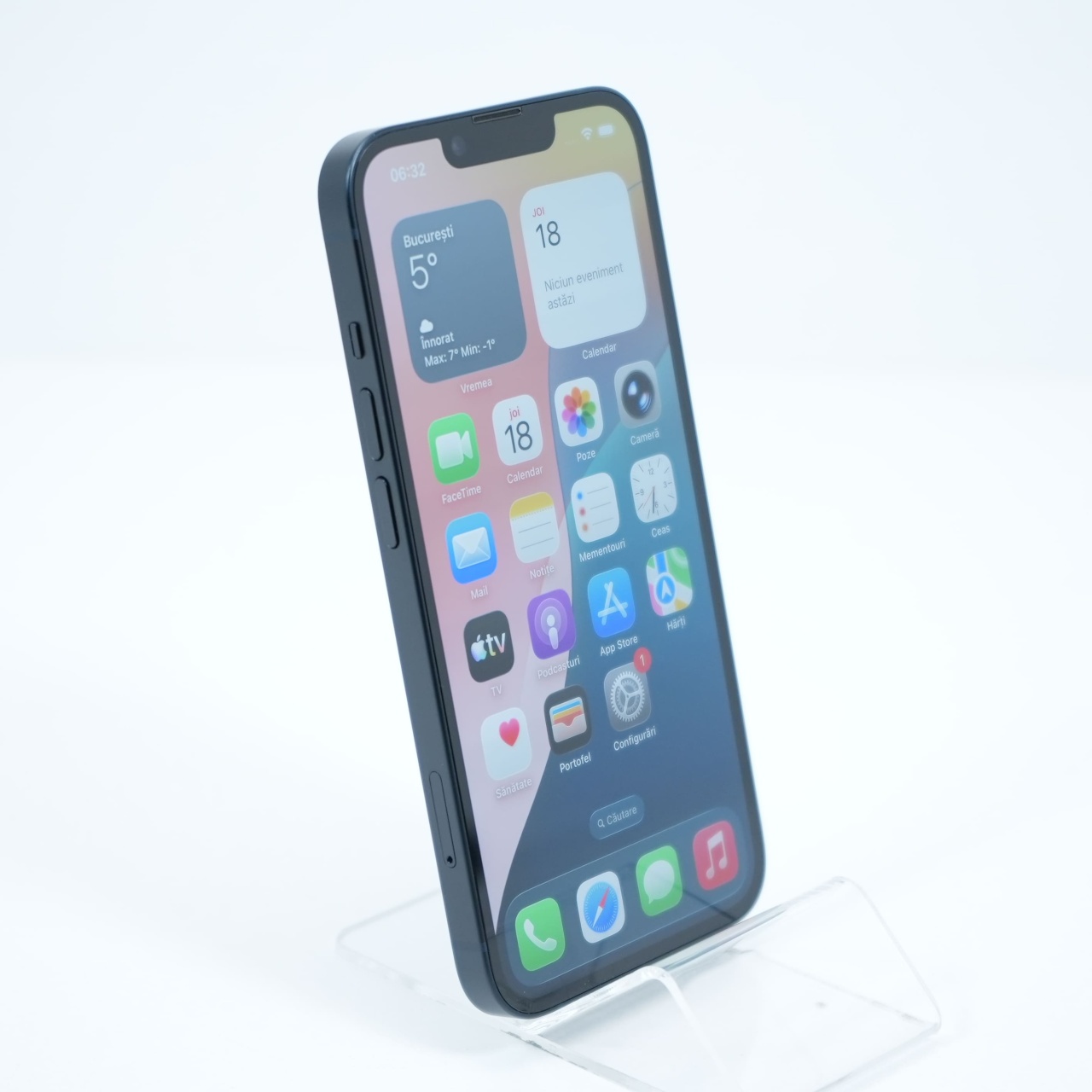 Ecran: 6.1 Procesor: Apple A15 Bionic Memorie RAM: 4 GB Memorie interna: 128GB Camera foto: Principala 12 MPx, Frontala 12 MPx Stare retea: Liber de rețea