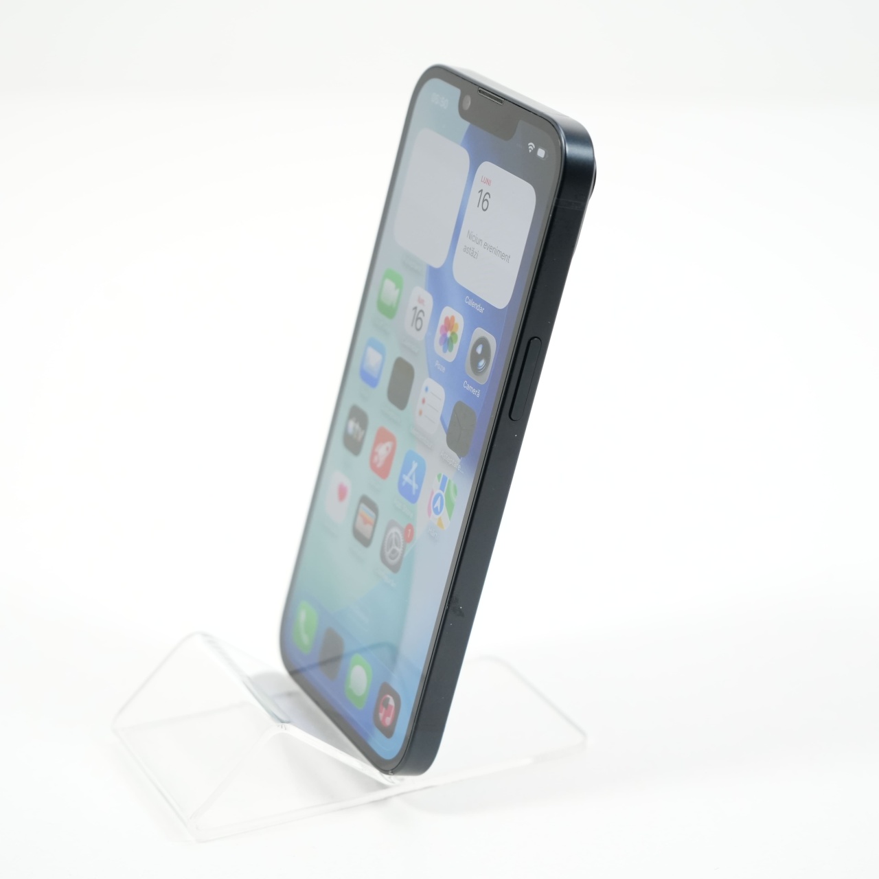 Ecran: 6.1 Procesor: Apple A15 Bionic Memorie RAM: 6GB Memorie interna: 128GB Camera foto: Principala 12 MPx, Frontala 12 MPx Stare retea: Liber de rețea
