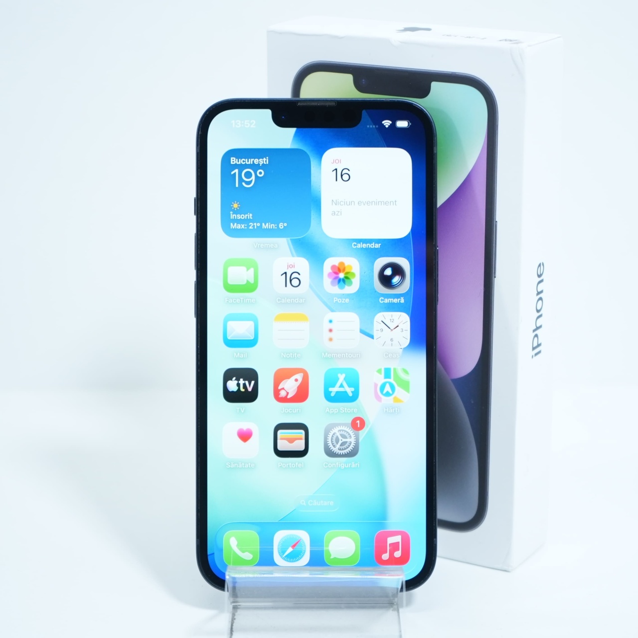 Ecran: 6.1 Procesor: Apple A15 Bionic Memorie RAM: 6GB Memorie interna: 128GB Camera foto: Principala 12 MPx, Frontala 12 MPx Stare retea: Liber de rețea