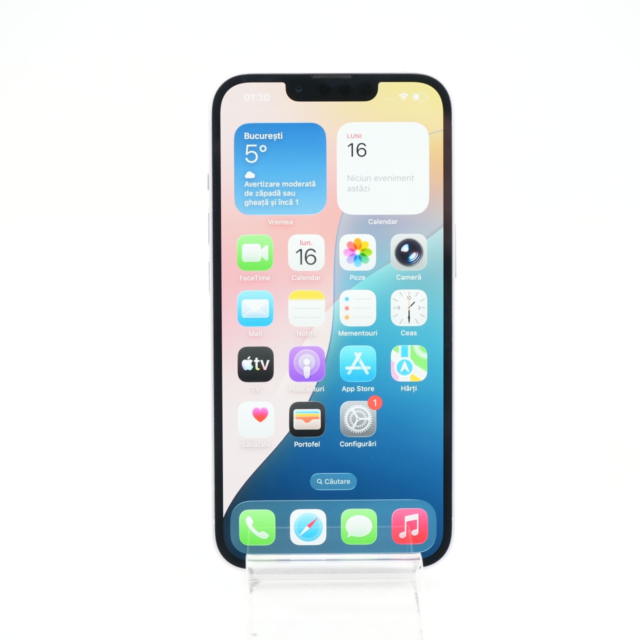 Ecran: 6.1 Procesor: Apple A15 Bionic Memorie RAM: 6GB Memorie interna: 128GB Camera foto: Principala 12 MPx, Frontala 12 MPx Stare retea: Liber de rețea
